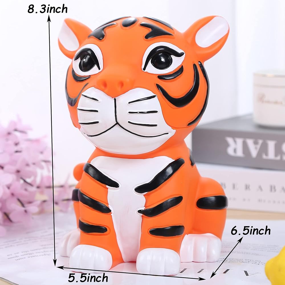 • 【LOVELY & SWEET GIFT】:Lovely tiger image makes this tiger coin bank a sweet gift for boys, girls and even adults on birthday, Christmas, New Year, holiday and other special occasions; It fits almost every type of standard coin, encourages child to saving with this cute tiger coin bank; Children should use it under the supervision of an adult to prevent swallowing