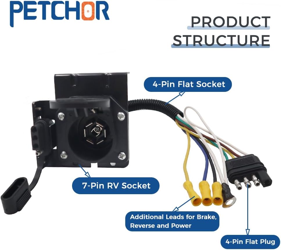 【تصميم متعدد الوظائف】: التصميم متعدد الاستخدامات لموصل المقطورة يجعل من السهل تحويل المقابس القياسية ذات 4 أسلاك مسطحة لتناسب مقابس الشفرة المسطحة ذات 4 اتجاهات و7 اتجاهات لتلبية احتياجات المقطورة الخاصة بك بشكل أفضل. تتوفر خيارات سحب متعددة من موصل طرفي واحد للمركبة لسحب أي مقطورة ثقيلة/خفيفة.