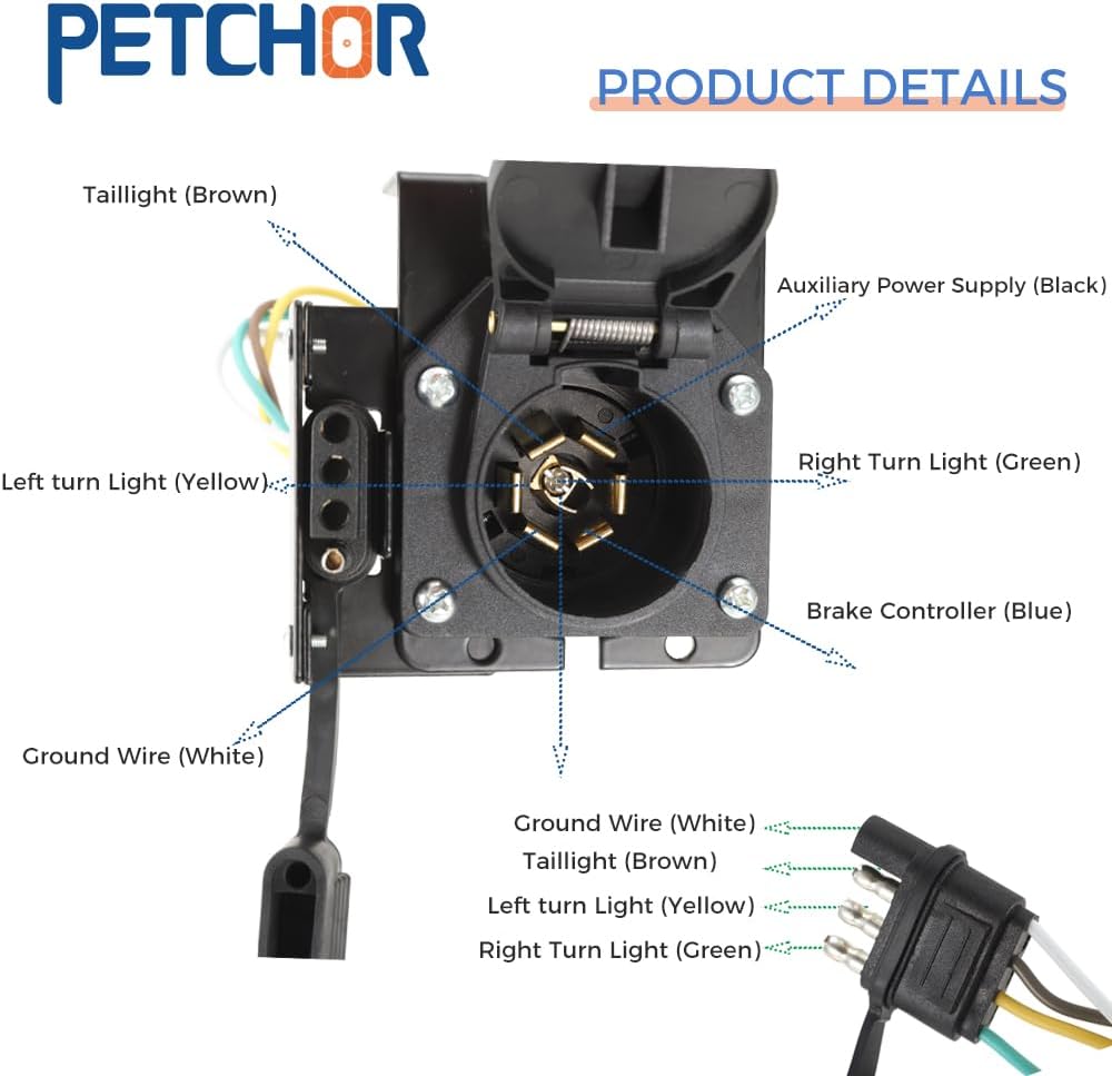 【سهلة التركيب】: يتم تركيب الموصلات القياسية ذات 4 اتجاهات و7 اتجاهات بسهولة وإحكام في المقابس الموجودة بالمقطورة وتبقى دون أي تمايل أو ارتخاء. تأتي العبوة مع دعامات تثبيت ومسامير وصواميل لسهولة التركيب. يتم تثبيته في فتحة التثبيت العالمية لمزيد من الراحة.