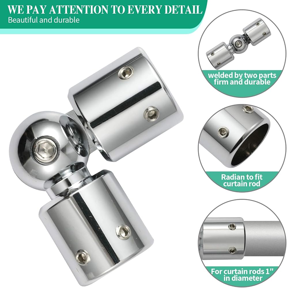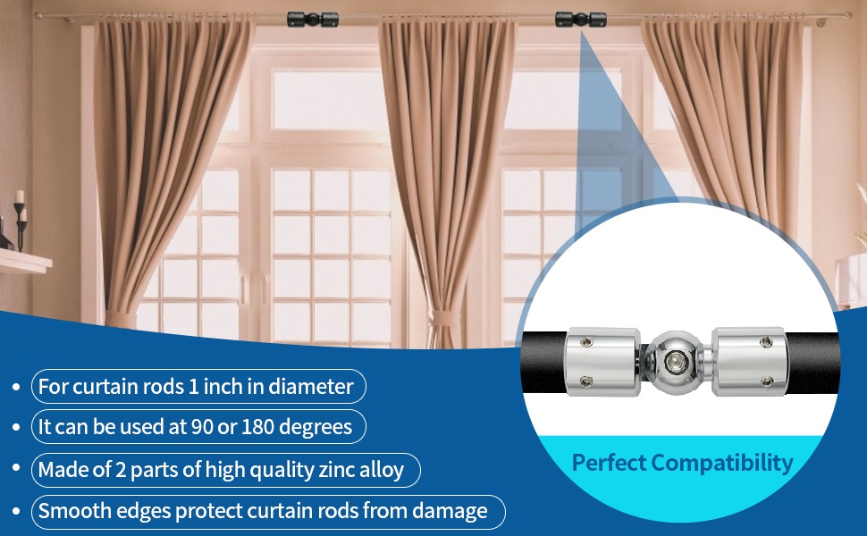 مادة سبائك الزنك المعدنية عالية الجودة، ثقيلة وقوية، يمكنها توصيل قضيب الستارة الثقيل. يحمل موصل الكوع المفصلي قطر قضيب 2.54 سم. يناسب قطرًا يصل إلى 2.54 سم.