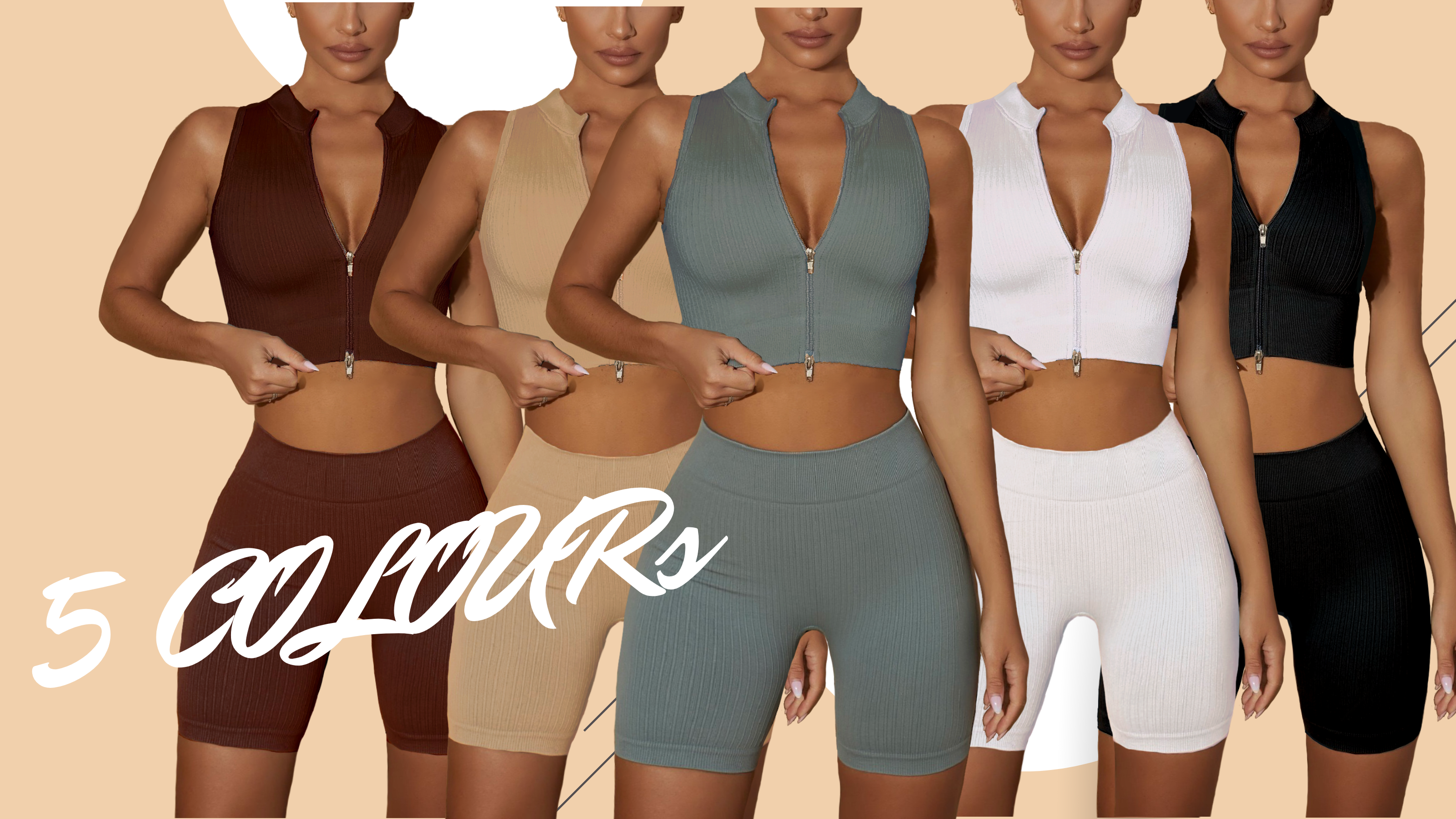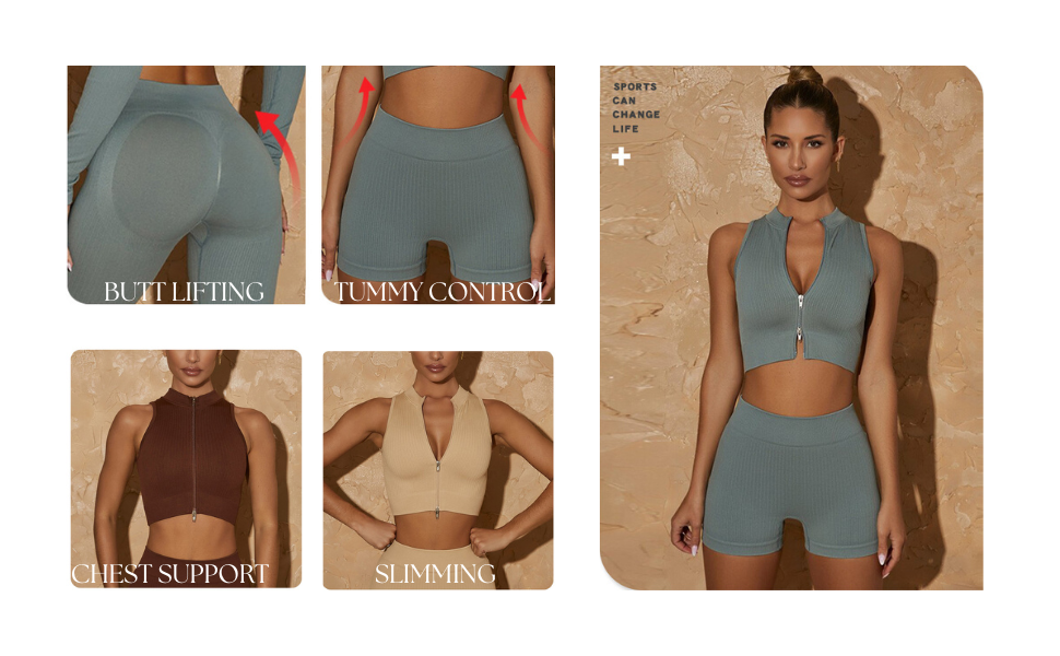 ملابس علوية نسائية بدون أكمام للتمرين في صالة الألعاب الرياضية مضلعة مكونة من قطعتين طقم يوجا بسحاب ملابس رياضية سلسة ملابس رياضية in Kuwait
