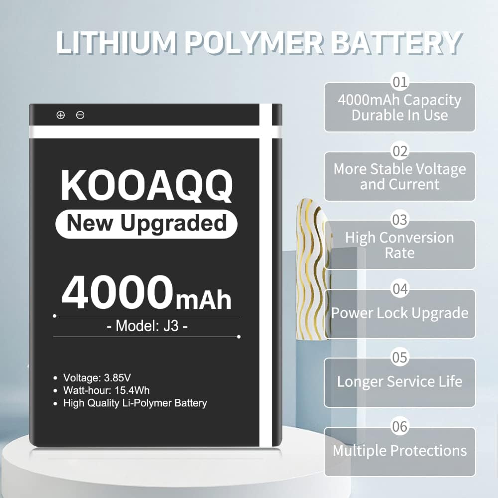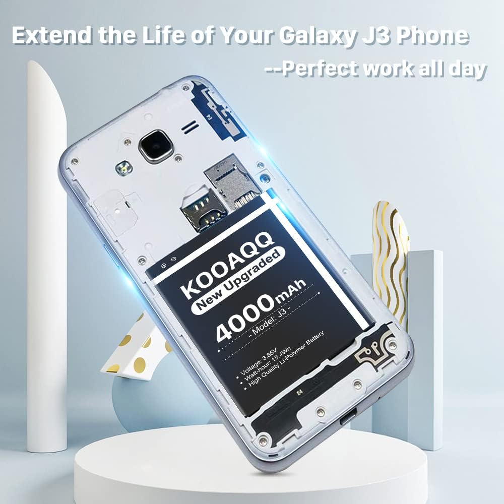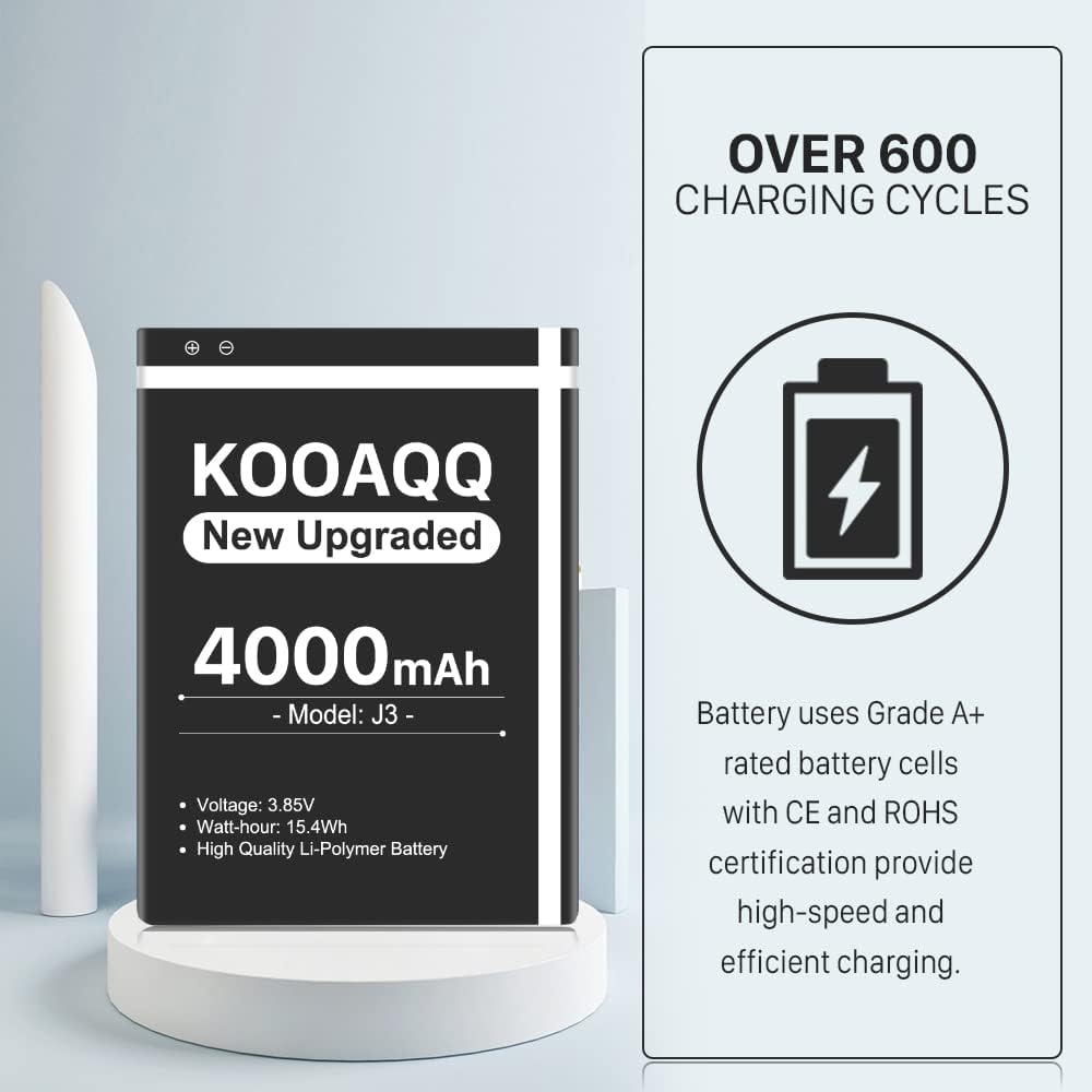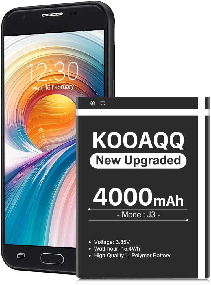 بطارية Galaxy J3، (الإصدار الجديد 2024) بطارية بديلة 4000 مللي أمبير في الساعة لهاتف Samsung J3 J327A J327P J320V J320A J320F J320P EB-BG530BBC EB-BG530BBE/ Galaxy On5/Galaxy Grand Prime SM-G550F