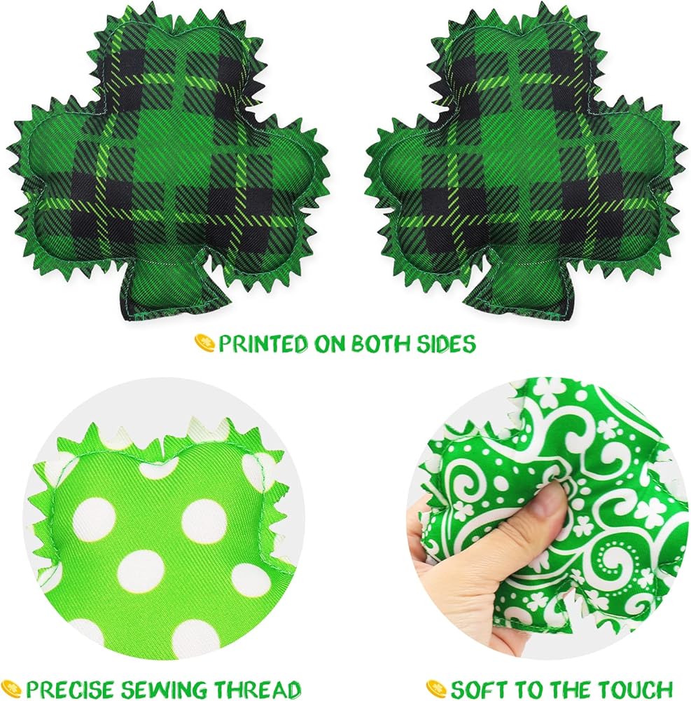 【مجموعة تزيين البرسيم لعيد القديس باتريك】مجموعة من 5 قطع من القماش المحشو لعيد القديس باتريك سوف تحصل عليها. تأتي بألوان مختلفة ويمكن استخدامها لتزيين أي مساحة. باستخدام أقمشة عالية الجودة وتكنولوجيا طباعة متقدمة، وملمس متين، وألوان زاهية. جودة هذا النفل سوف تستمر لسنوات عديدة.