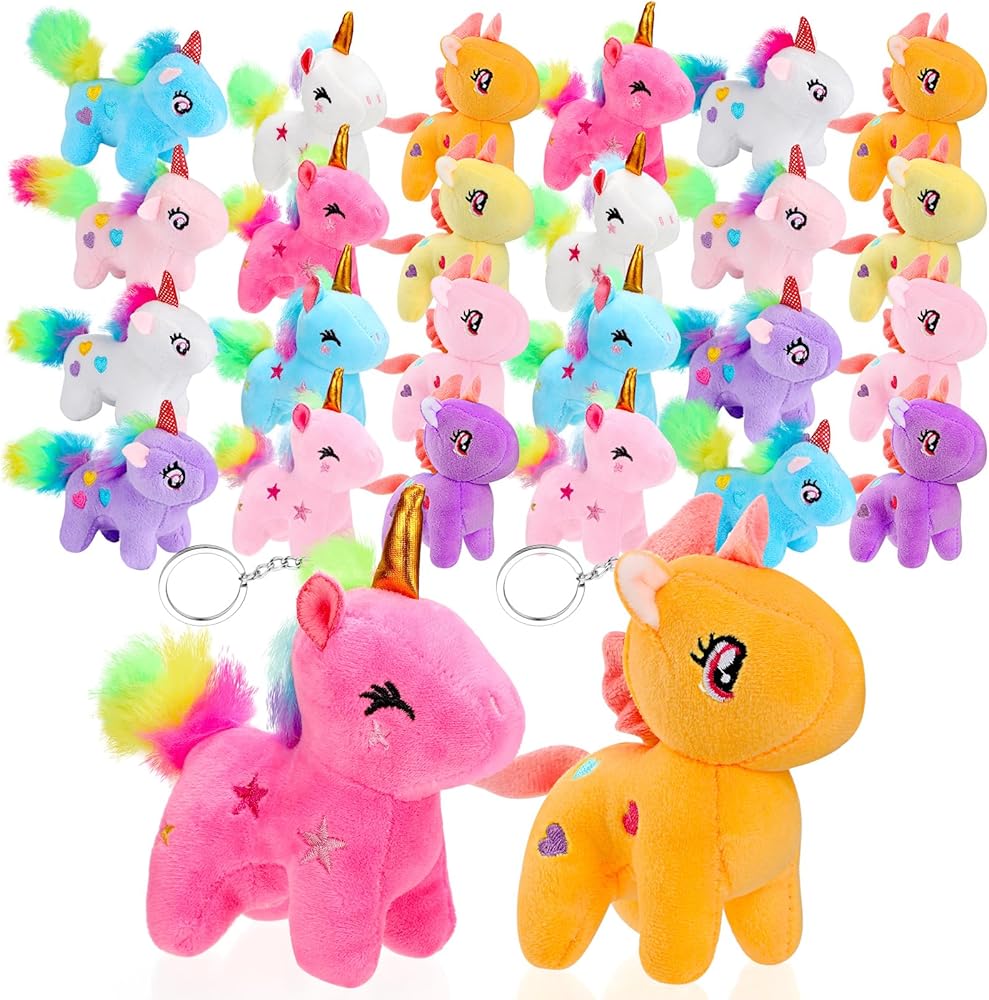 ألعاب وحيد القرن القطيفة الصغيرة الكافية: سوف تحصل على 24 قطعة من الحيوانات الصغيرة المحشوة بأنماط وألوان مختلفة، وكمية كافية وأنماط متنوعة لتلبية احتياجاتك المتنوعة، ويمكنك أيضًا مشاركتها مع عائلتك