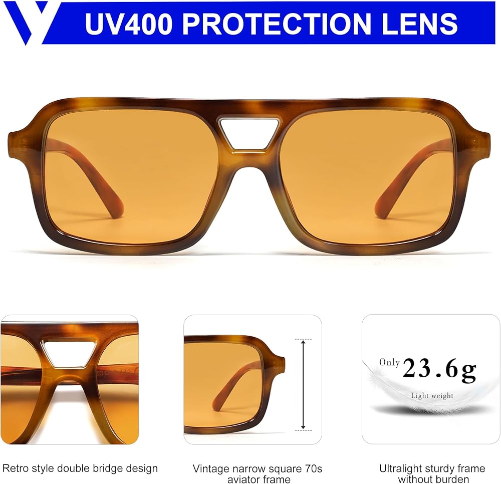 🔥【نمط طيار مستطيل ضيق】إطار مربع كلاسيكي من السبعينيات، يتميز بلون جريء أنيق متطابق مع تصميم عدسة مربعة ملونة، نحن نحبه. ما عليك سوى إضافته إلى ملابسك اليومية للحصول على لمسة نهائية أنيقة فورية.