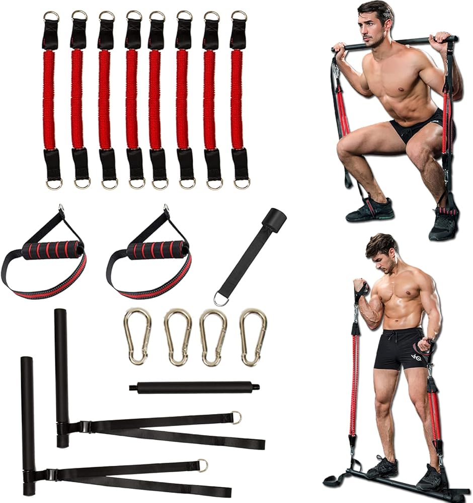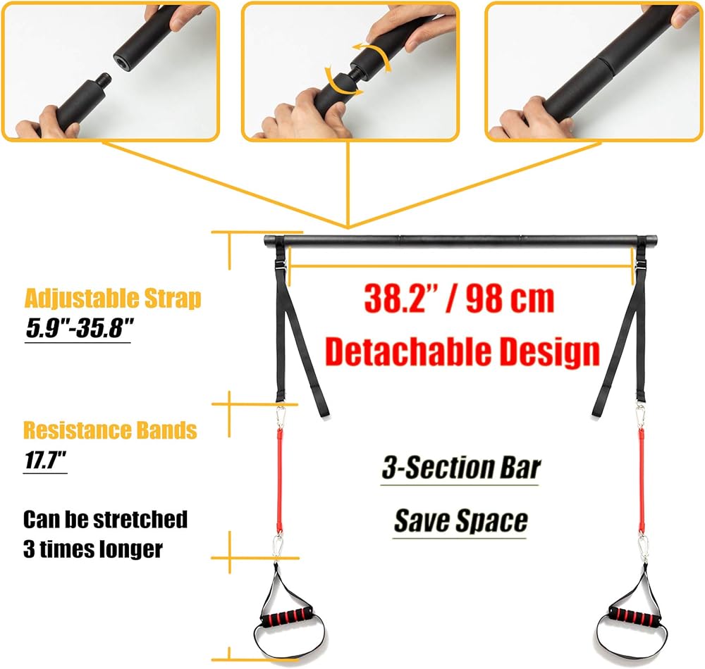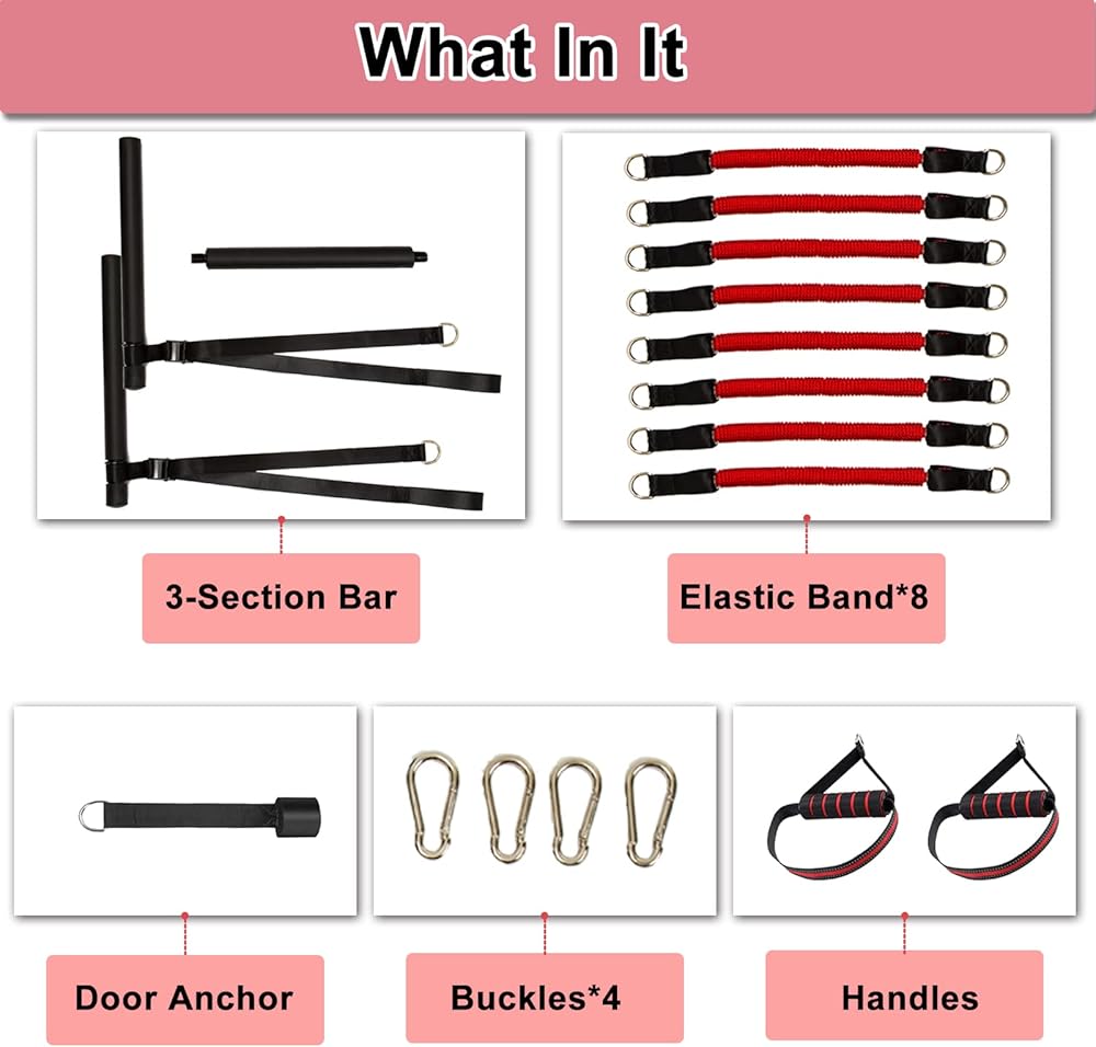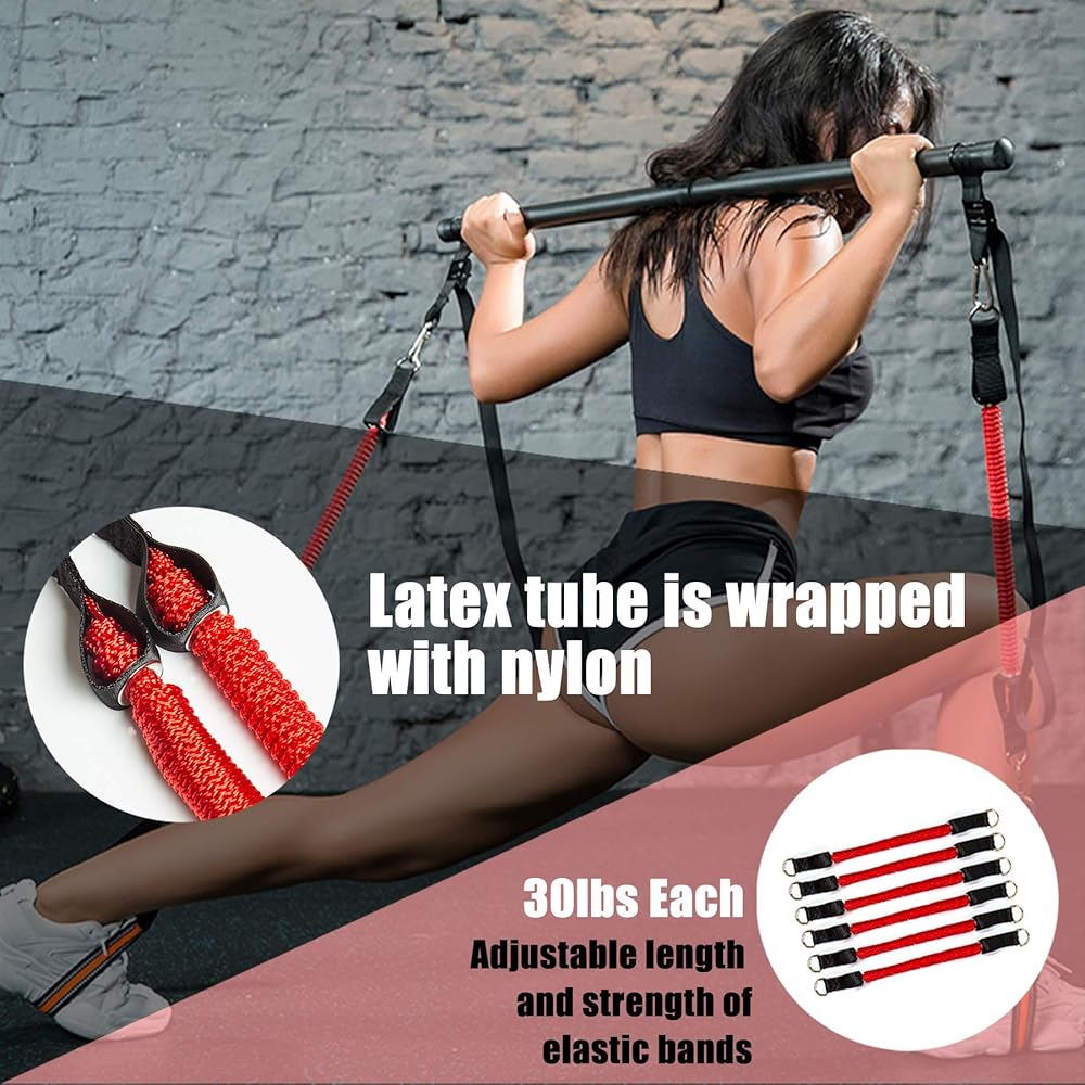 【 قضيب بيلاتيس قابل للفصل والمحمول: الكل في واحد، تصميم تمرين قابل للفصل سهل الفك والتركيب. يمكن تفكيك مجموعة شريط المقاومة بسهولة، ومريحة للتخزين، ويمكنك التدريب في المنزل أو القيام بها، مثل صالة الألعاب الرياضية، والسفر، إلخ.