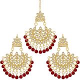 Aheli أنيقة الزفاف الهندي التقليدي كوندان مطرز Maang تيكا مع طقم من الحلقان للنساء مجوهرات حفلات بوليوود العرقية
