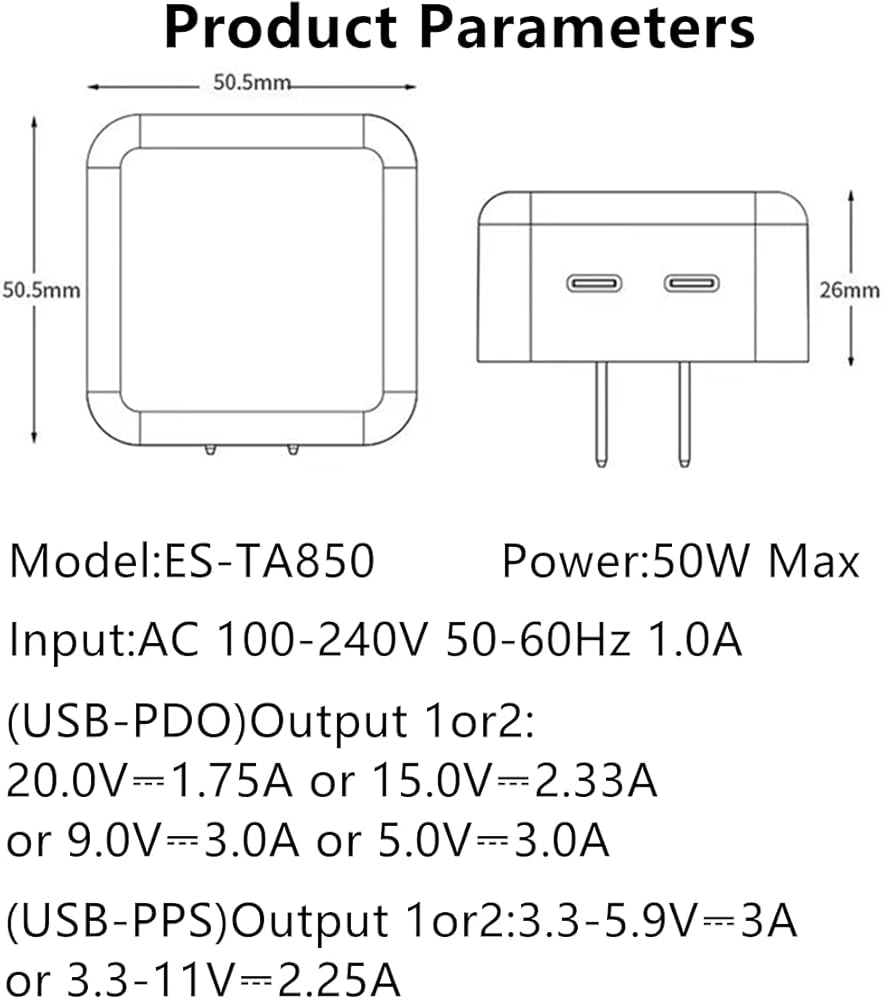 【 ما تحصل عليه: 1 × شاحن PD مزدوج المنفذ (50 وات)؛ 2 × كابل بيانات شحن USB C إلى USB C بطول 3.3 قدم. لا تتردد في الاتصال بنا. سيقدم لك فريق الخدمة لدينا حلاً مرضيًا في غضون 24 ساعة.