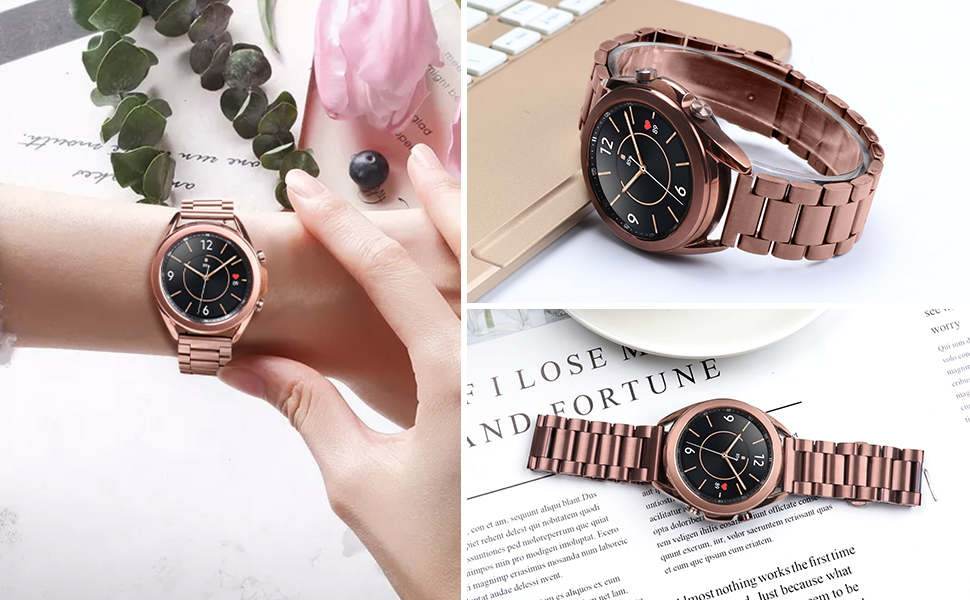 أحزمة ساعة EloBeth متوافقة مع Samsung Galaxy Watch 3 Band 41mm برونزي غامض من الفولاذ المقاوم للصدأ معدني Galaxy Watch 3 Bands ملحقات حزام الأعمال