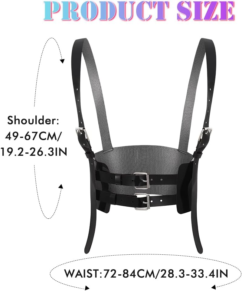 Gothic harness can be adjusted to fit your body shape and fits perfectly around your waist.Only fit 28-33.4IN waist circumference.