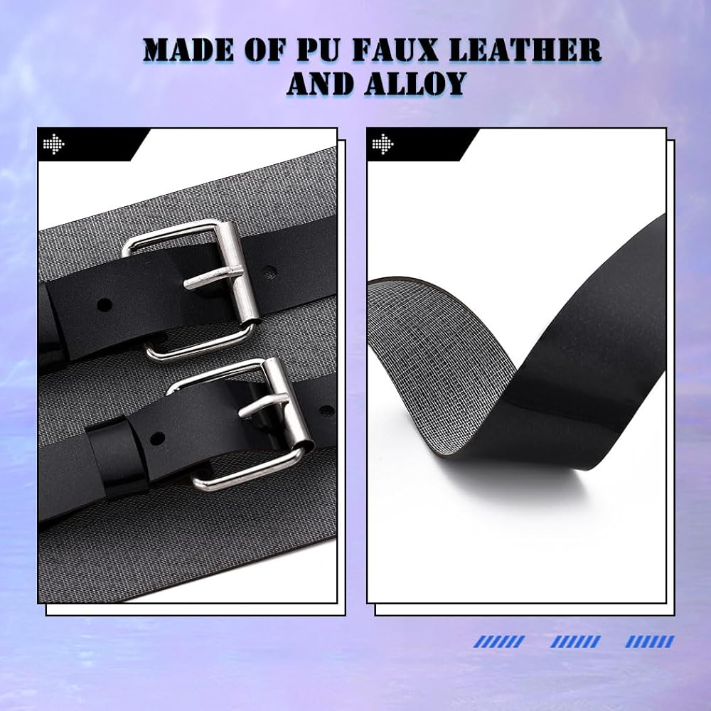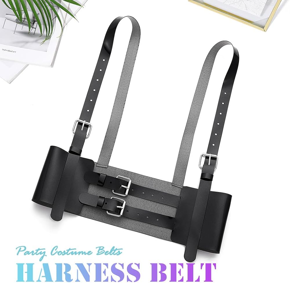 Black harness belt is made of PU Faux leather and alloy,which is soft, durable,adjustable and easy to wear