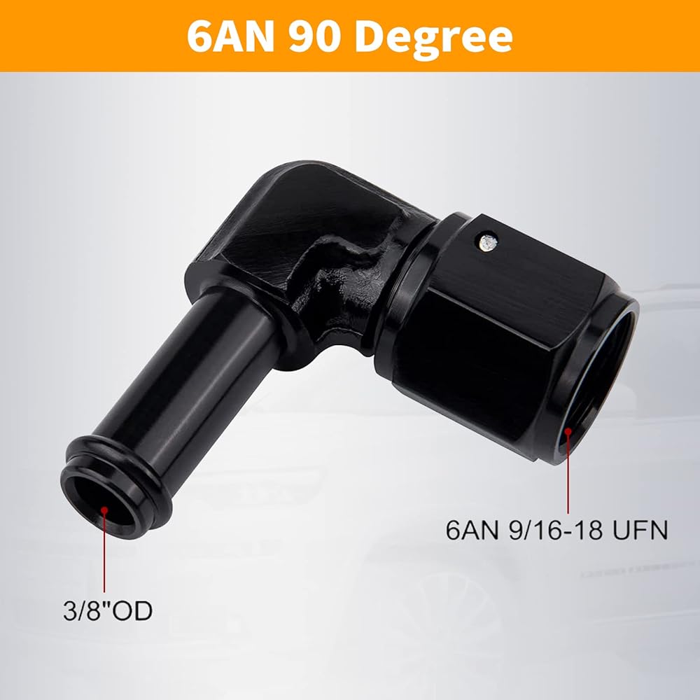 🚕 Different Specifications: Here are four specifications for you to choose from. They are straight AN6-5/16 and straight AN6-3/8, 90 degree swivel AN6-5/16 and 90 degree swivel AN6-3/8.