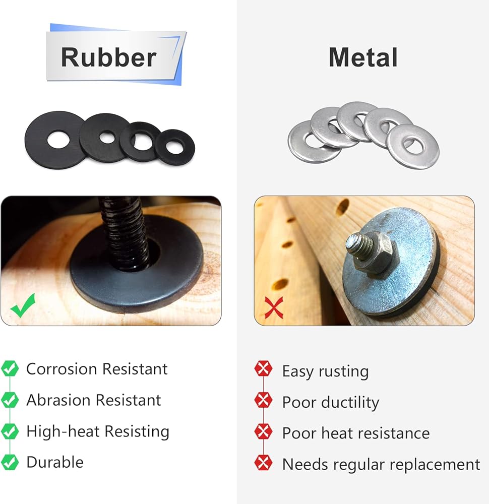 • مادة قوية وموثوقة: غسالات مطاطية سوداء للمسامير مصنوعة من مادة مطاطية عالية الجودة، وهي مرنة ومرنة، وموثوقة، وليس من السهل ارتخاؤها، ولن تترك خدوش، مما يضمن عمر خدمة طويل.