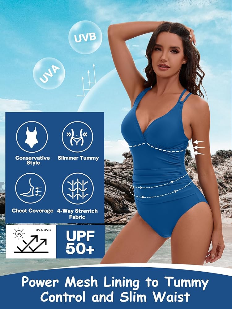 • مظهر وحماية جذابة: تتميز بدلات السباحة النسائية المكونة من قطعة واحدة لدينا بقميص على الجانبين، وتنحيف وإخفاء بصريًا مع تنعيم البطن والأرداف. يضمن لك الجزء السفلي الشعور بالأمان والراحة عند الجري حول الشاطئ أو حمام السباحة.