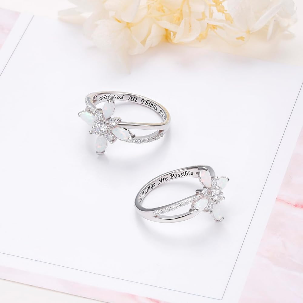 ❤كلمة منقوشة❤ تتميز بصليب أوبال أبيض رائع تم تصميمه منقوش عليه عبارة "مع الله، كل الأشياء ممكنة"، كدين نبيل لحماية ومباركة الأشخاص الذين تحبهم.