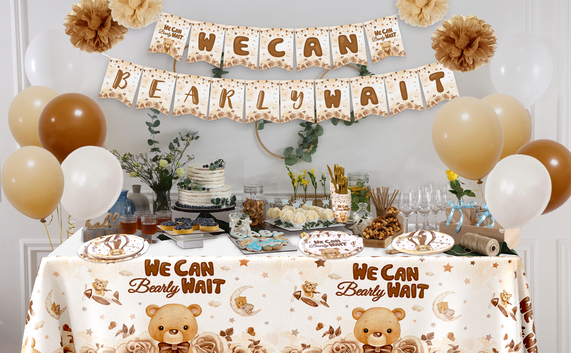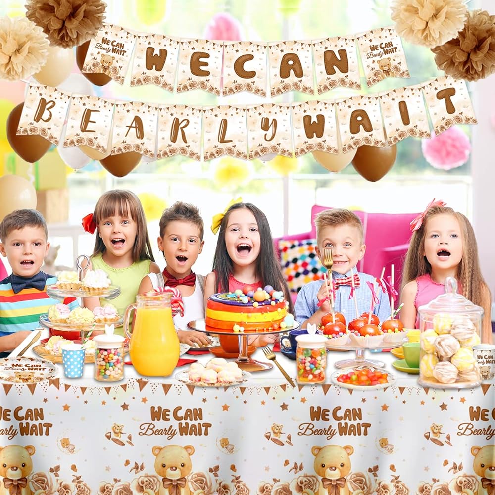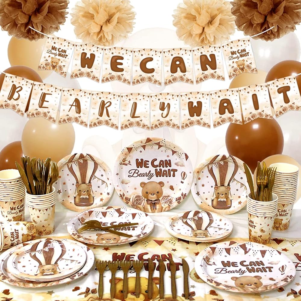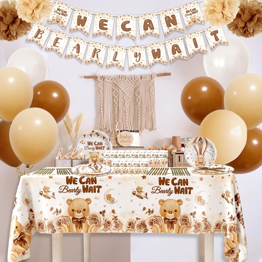 مجموعة زينة استحمام الطفل الدب| يمكننا أن ننتظر شعارًا | ديكور الحفلات الذي يكشف عن الجنس | ديكور الدب المحايد للجنسين للأولاد والبنات لحفلات أعياد الميلاد ذات طابع الدب