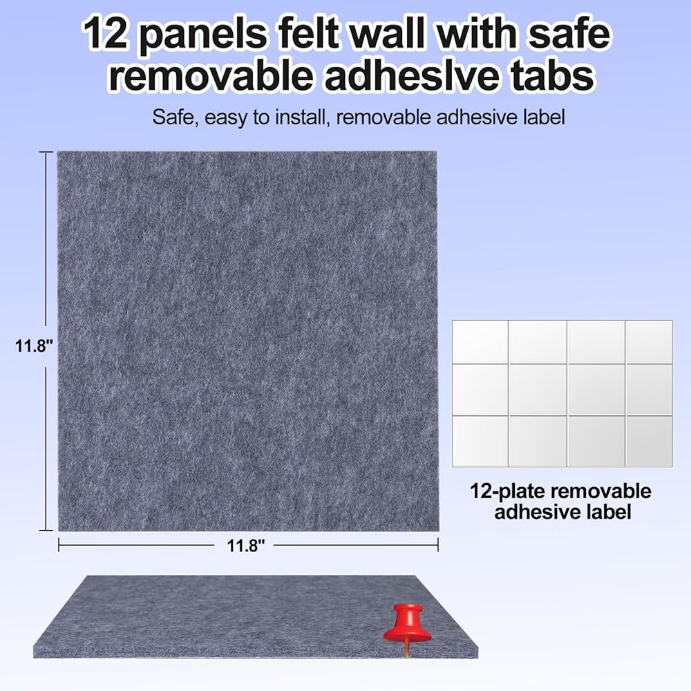 تحتوي العبوة على 12 قطعة من ألواح اللباد عالية الكثافة بسمك 11.8 سم × 11.8 سم و0.35 سم و48 قطعة من شريط الأكريليك مزدوج الجوانب.