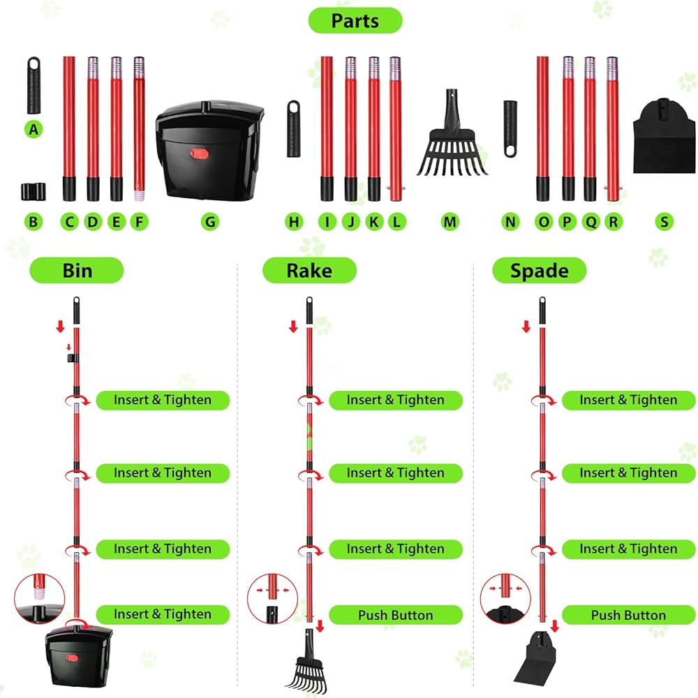 سهلة الاستخدام والتخزين والتنظيف - مغرفة المخلفات هذه سهلة الاستخدام للغاية، ما عليك سوى إزالة أو تركيب الأنبوب، ووضع الصندوق البلاستيكي بجوار النفايات واستخدام المشط المعدني لنقل النفايات إلى الوعاء. عند عدم استخدام مجرفة الكرسي، ارفع واضغط بلطف، يمكن للصندوق الدوار أن يقف في ساحة التخزين. الصندوق الدوار مصنوع من مادة ABS الناعمة والمتينة والمشط مصنوع من معدن صلب مطلي، مقاوم للأوساخ وسهل التنظيف بمجرد غسله بالماء.
