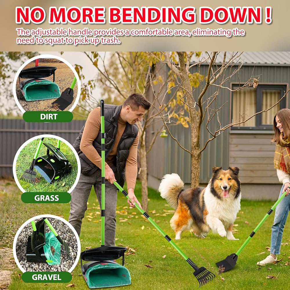 مقبض طويل مريح قابل للتعديل - تسمح لك المقابض المقسمة المصممة خصيصًا بتعديل طول المقبض بحرية وفقًا لاحتياجاتك. يمكن أن يصل حجم المقبض إلى 47.2 بوصة (للصندوق). سواء كنت كبيرًا في السن أو حاملًا، فإن مغرفة مخلفات الحيوانات الأليفة الطويلة جدًا القابلة للتعديل تسمح لك بالالتقاط من وضع مريح. يجعلها ملائمة للاستخدام من قبل الأشخاص من جميع الأطوال، حيث أنك لن تحتاج إلى الانحناء لاستخدامها. لذا فإن ملاحقة صديقك ذو الفراء لم يعد عملاً روتينيًا مرهقًا.