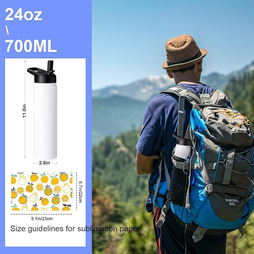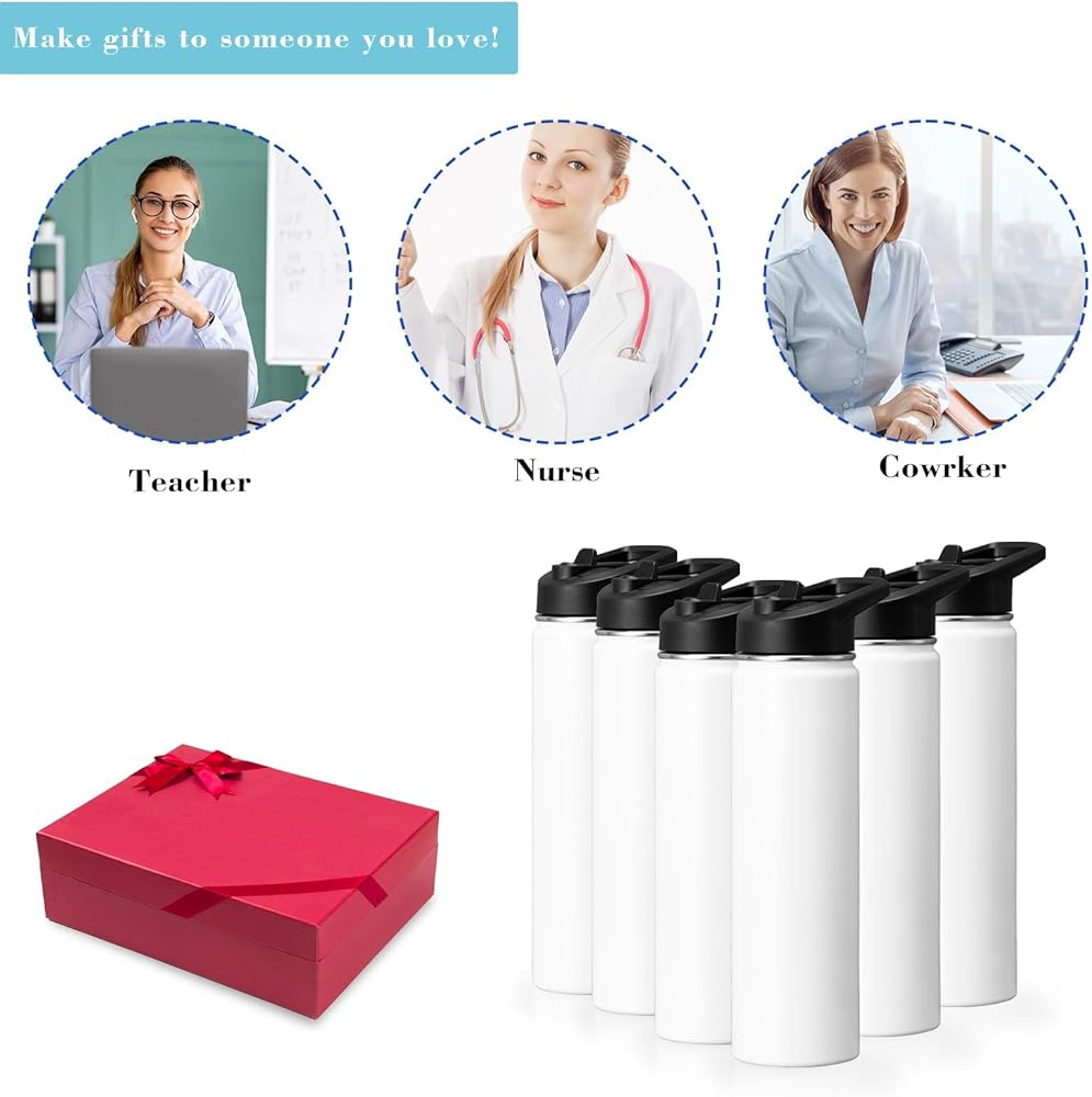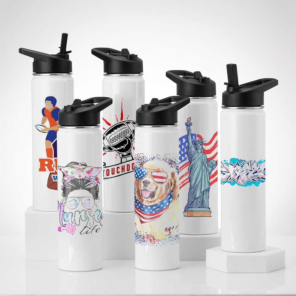 فراغات زجاجات المياه بالتسامي: مجموعة من 6 زجاجات مياه مخصصة مصنوعة من الفولاذ المقاوم للصدأ 18/8 الخالي من مادة BPA مع طلاء بوليمر للطباعة المخصصة.