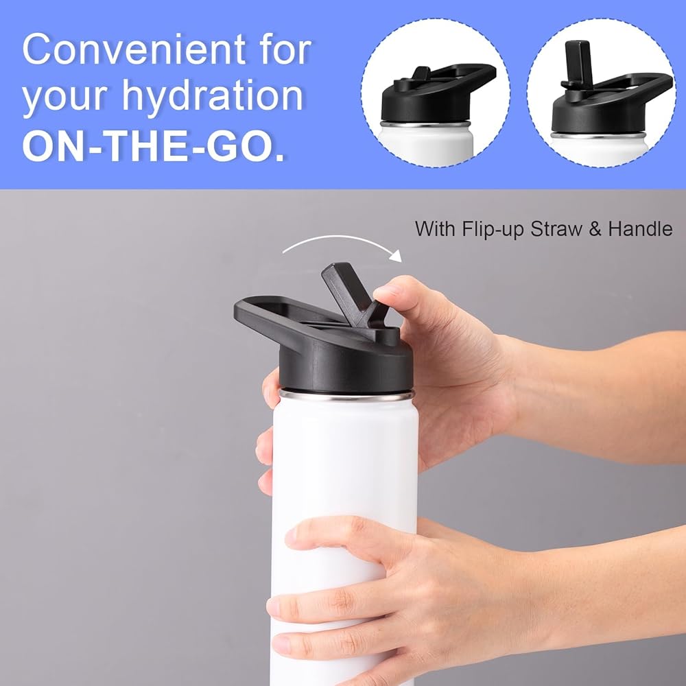 سهولة الاستخدام بيد واحدة: تصميم نحيف مع غطاء فم واسع وغطاء من القش لسهولة الفتح والشرب بيد واحدة.