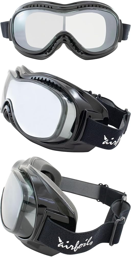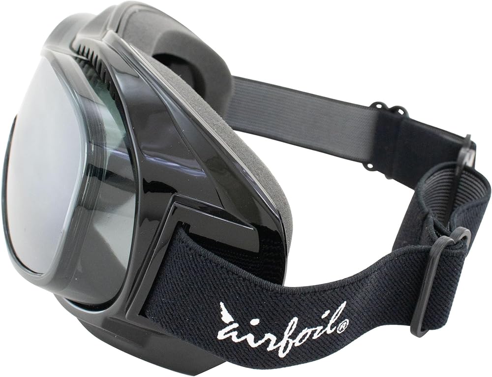 Airfoil Black Goggles With Anti Fog Smoke Silver Mirror Polycarbonate Lens with UV 400 Protection. Cruise in style with these black goggles with smoke silver mirror lens. Not only will you look cool but, you'll feel cool. They