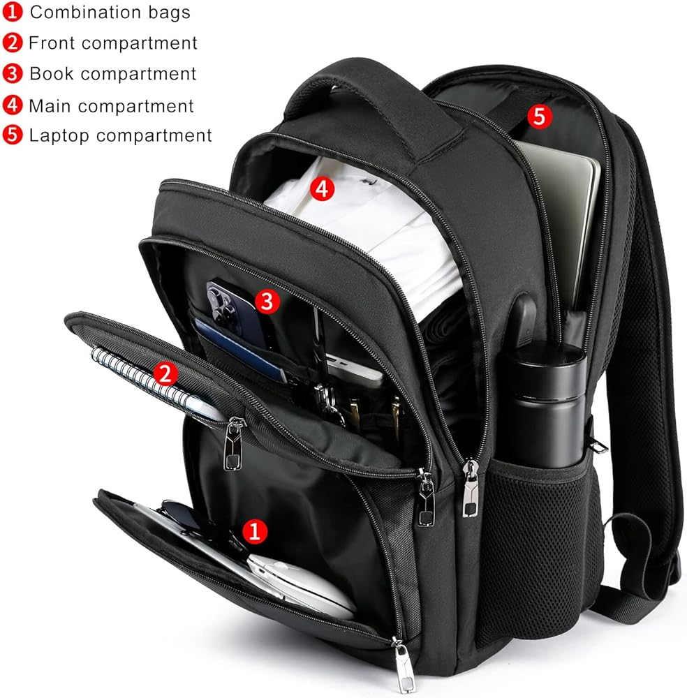 3 spacious main compartments with many hidden pockets can accommodate lots of stuffs like college supplies, travel accessories, clothes, stationery, school books. laptop backpack side pockets hold your umbrella, water bottle, small accessories and more