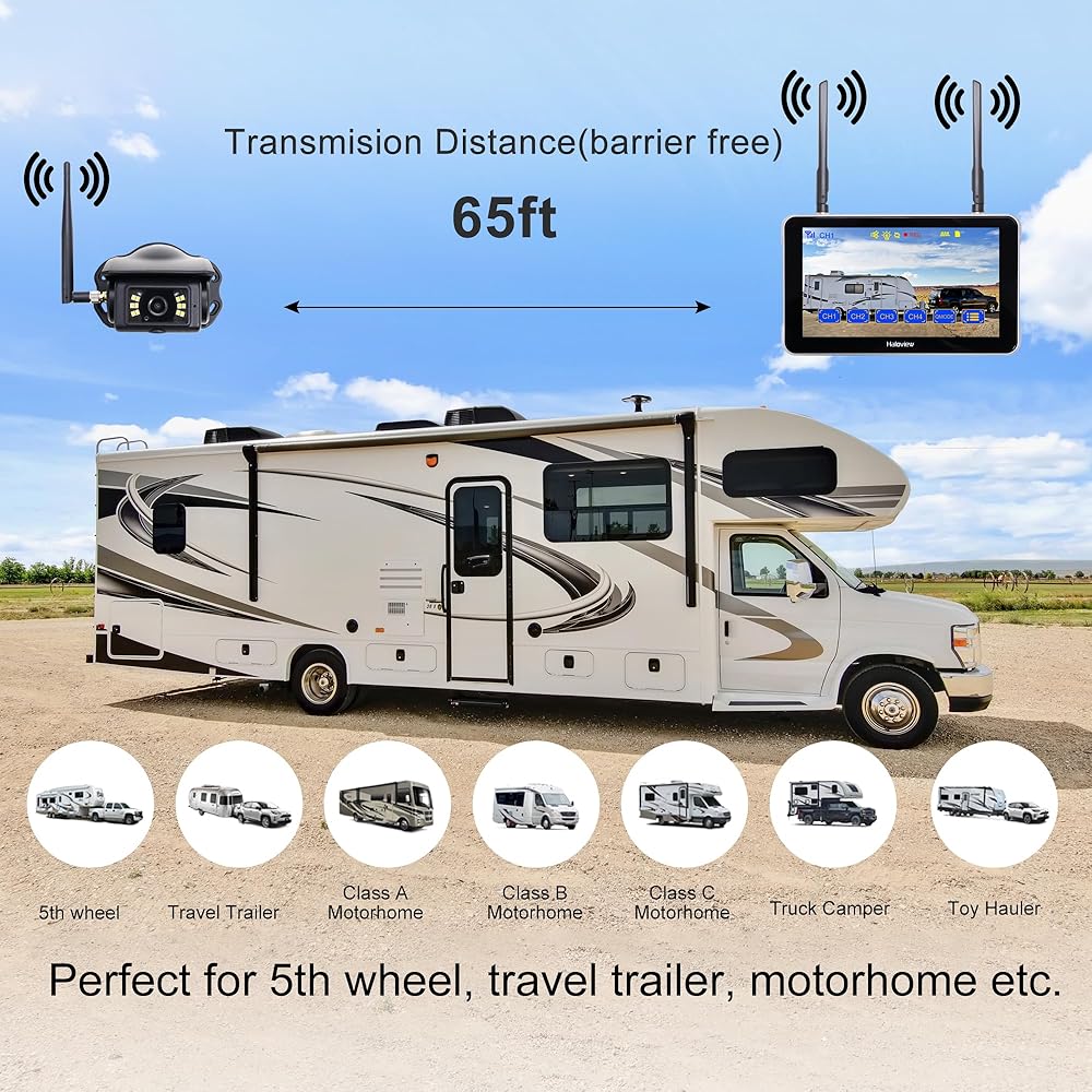 • زمن الوصول المنخفض: تضمن التقنية اللاسلكية من الجيل الجديد إشارة أقل من التأخر والتداخل، هذه كاميرا احتياطية لاسلكية من Haloview متوافقة مع المركبات المتعددة: تدعم التثبيت على المركبات التي يصل طولها إلى 65 قدمًا، مثل RV، ومقطورة السفر، والشاحنة، والتخييم، والشاحنة، والبيك اب ، جرار، العجلة الخامسة، منزل متنقل الخ.