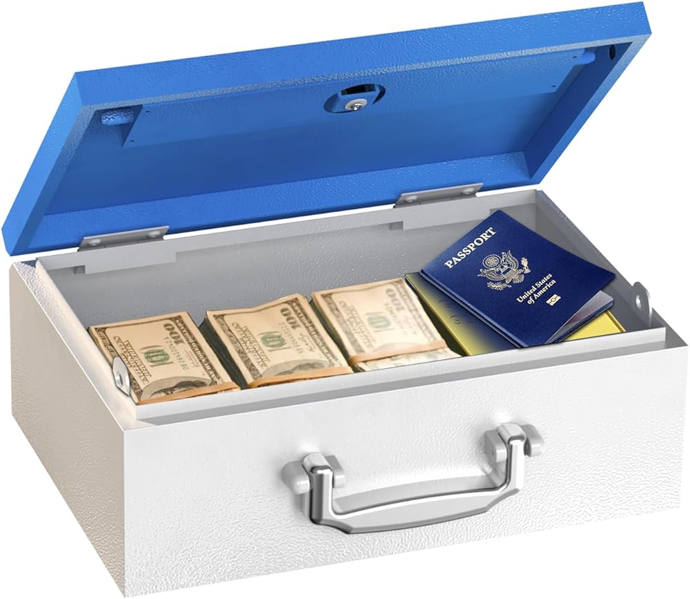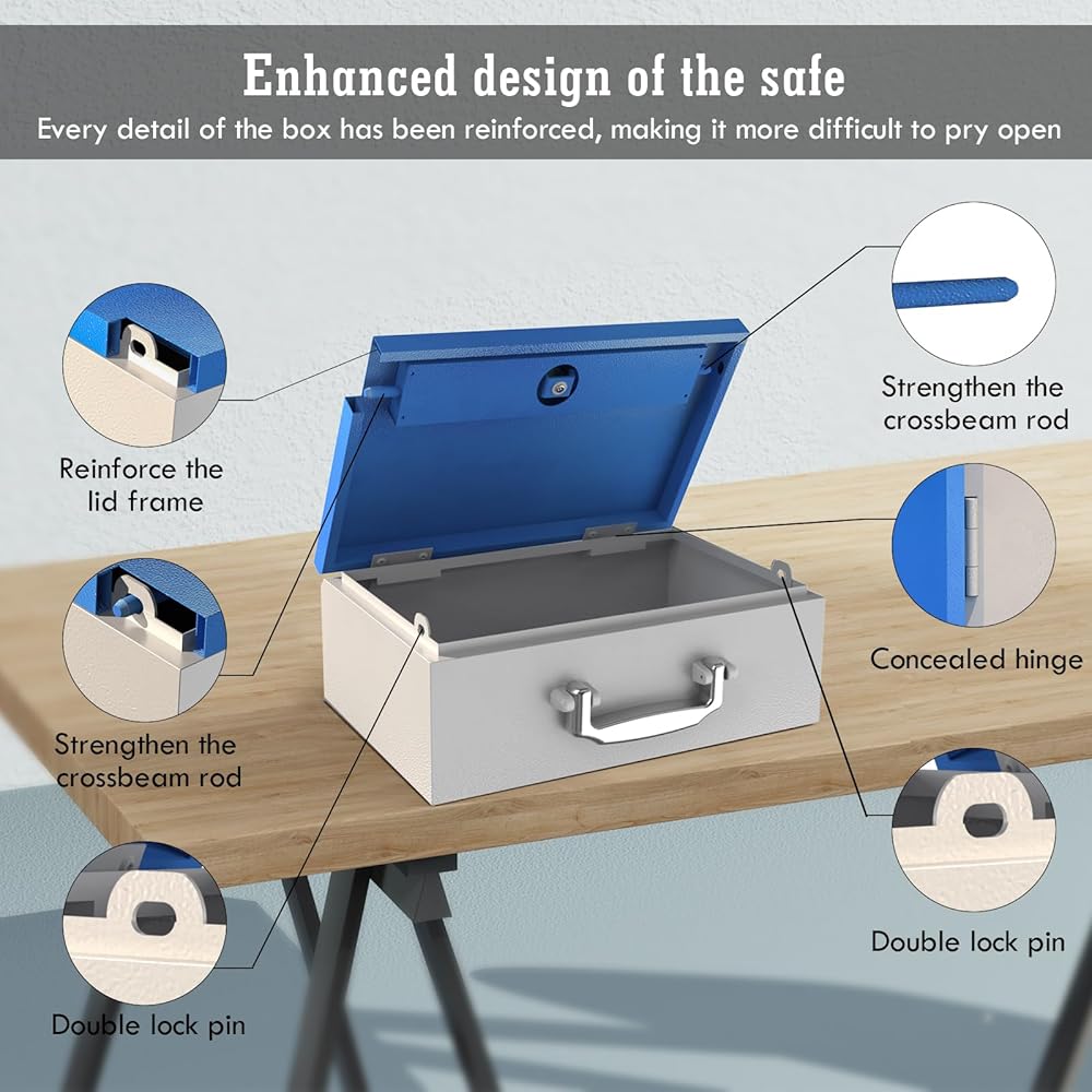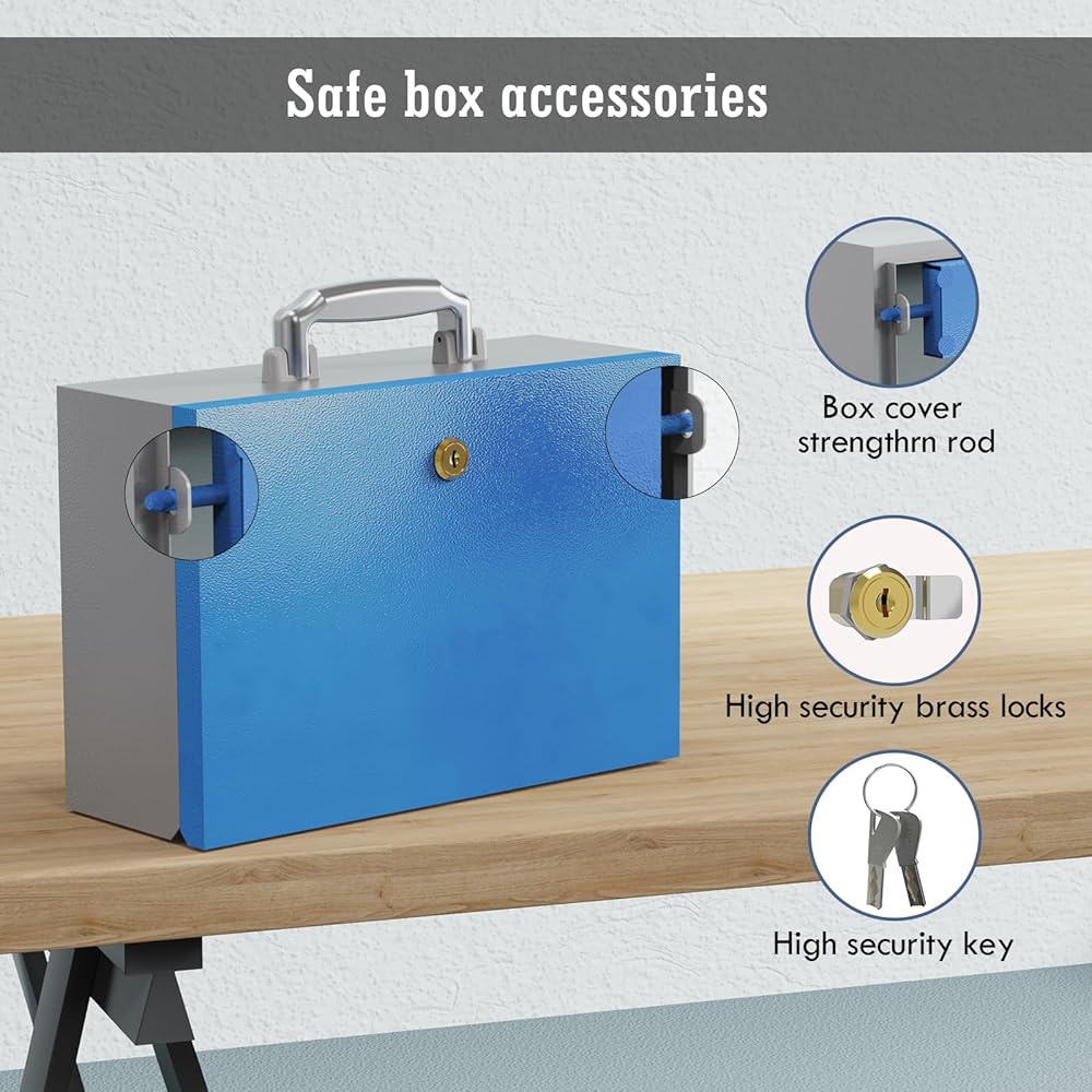 هيكل متين: استمتع براحة البال مع صندوق الأمان المحمول الخاص بنا، المصنوع من المعدن القوي لحماية مقتنياتك الثمينة في حالات الطوارئ.