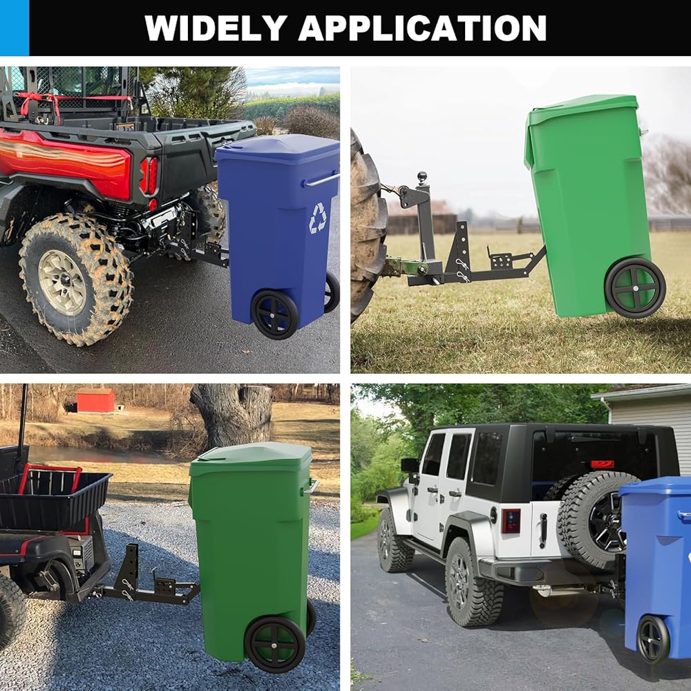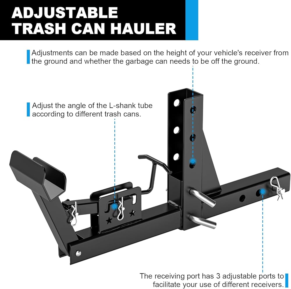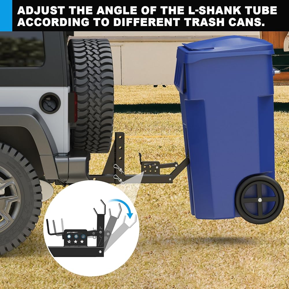 جهاز استقبال وصلة وصلة سلة المهملات قابل للتعديل مقاس 2 بوصة، ملحق وصلة وصلة جر علب القمامة شديدة التحمل، حامل وصلة قمامة خارجي يناسب معظم موديلات الشاحنات/عربة الجولف/ATV/UTV/المقطورة