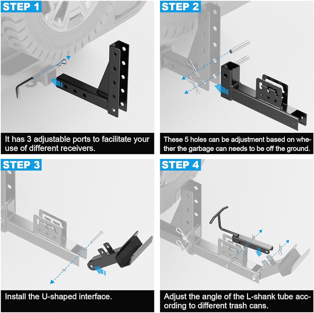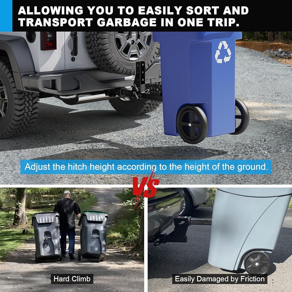 • 【تصميم قابل للتعديل】تم تصميم حاملة سلة المهملات لتكون قابلة للتعديل في 3 أماكن، مما يجعل من السهل على سيارتك رفع سلة المهملات، مما يمنع مشكلة النقل اليدوي وأضرار الاحتكاك بين سلة المهملات والأرض.