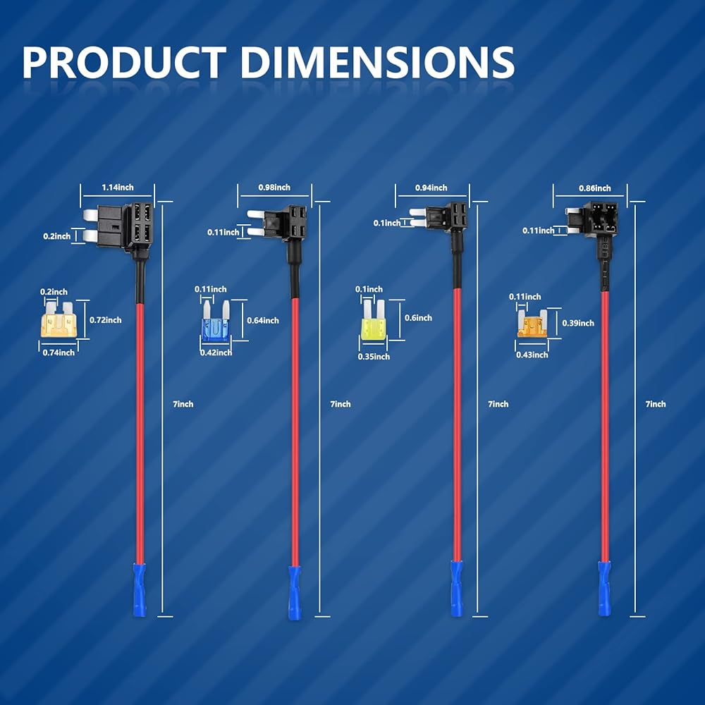 🚕 Widely Used: Suitable for cars, trucks, SUVs, ATVs, motorcycles, boats, snowmobiles and most general DC applications etc. You can use this fuse tap when adding car alarms, LED light bars, radar detectors, car recorders or other electronic devices that need to be wired directly to the fuse box.