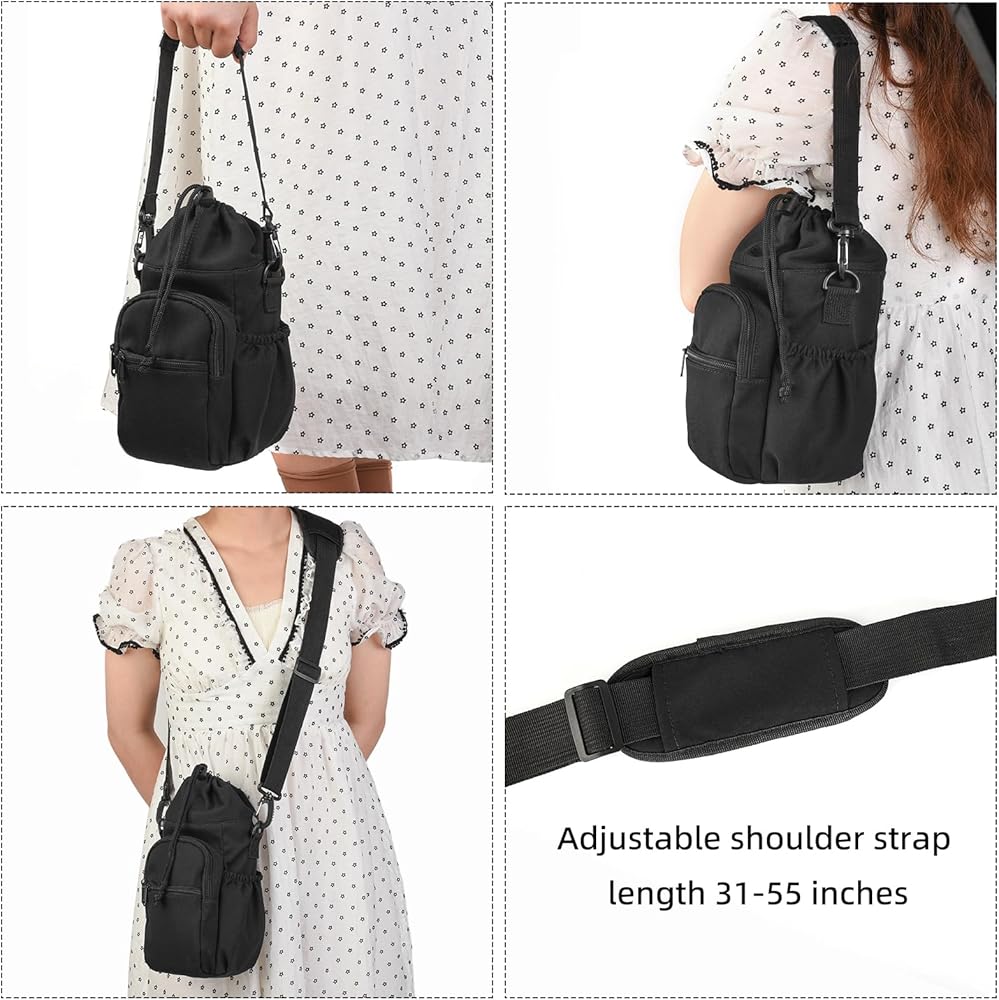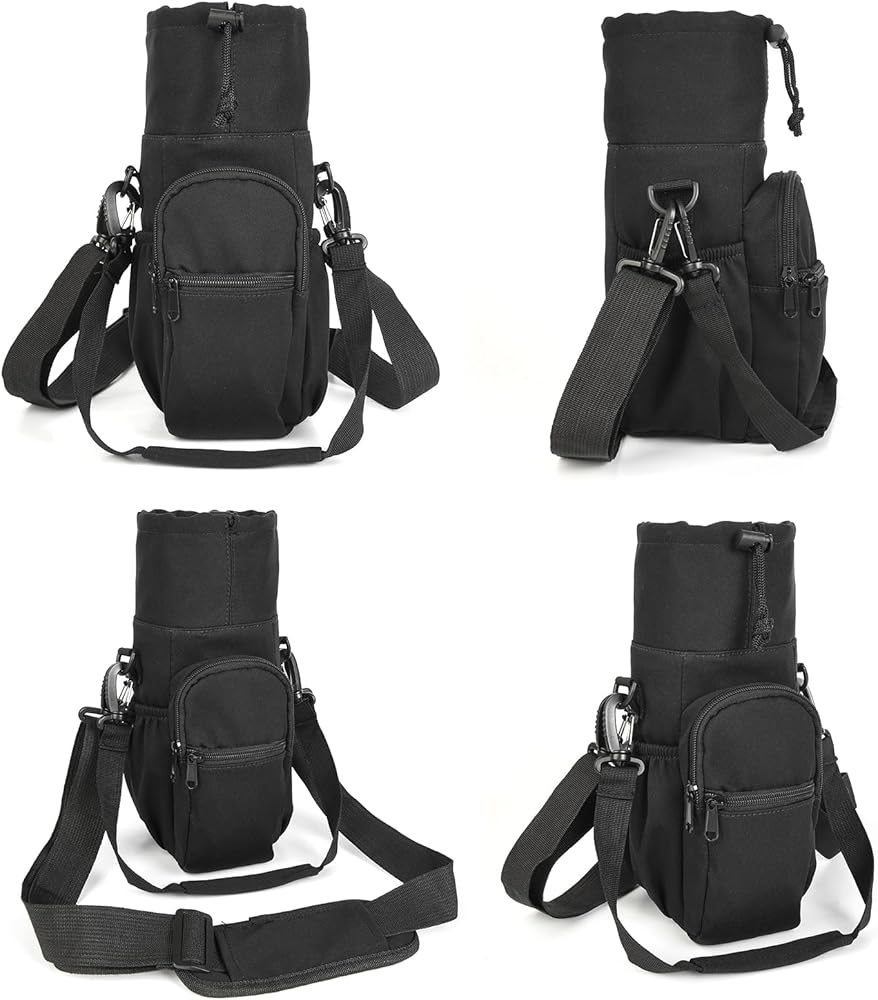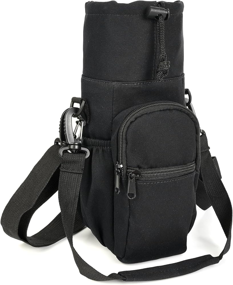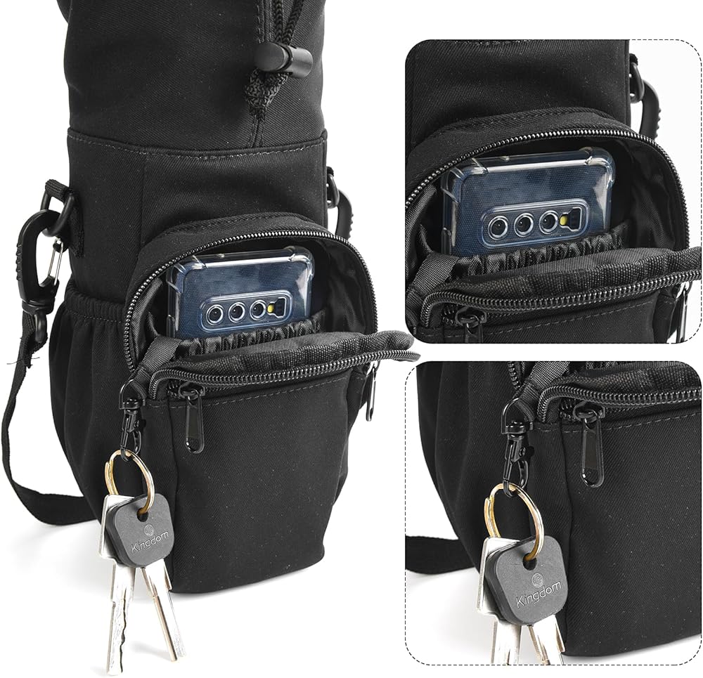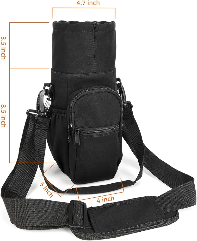 جيوب مصممة جيدًا: توفر حقيبة حامل زجاجات المياه الخاصة بنا مساحة واسعة لجميع أغراضك الشخصية. يحتوي الجيب الرئيسي على رباط إغلاق مريح للحفاظ على الزجاجة في مكانها. يوجد أيضًا جيبان أماميان بسحاب مع أحزمة للمفاتيح لتخزين هاتفك الذكي والمفاتيح وغيرها من الضروريات، وحزامين جانبيين على الجانبين لتخزين الوجبات الخفيفة والتغيير والمزيد؛