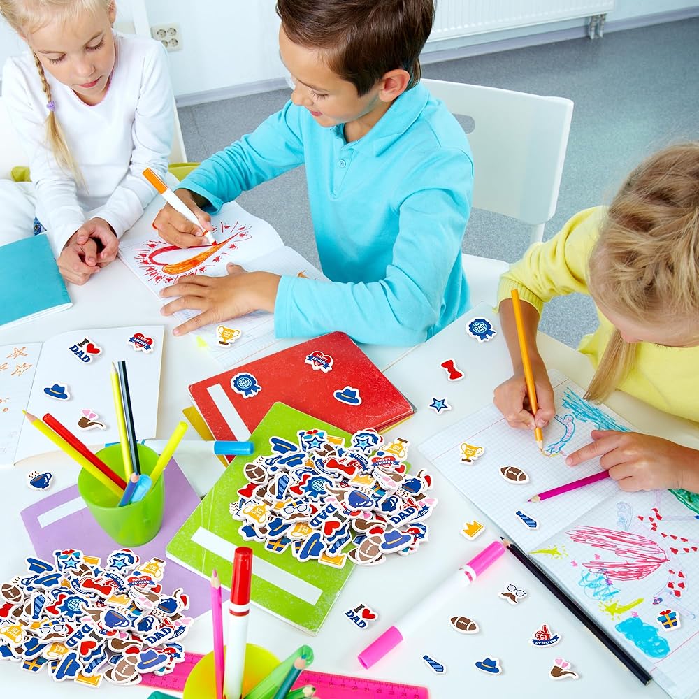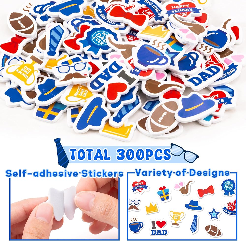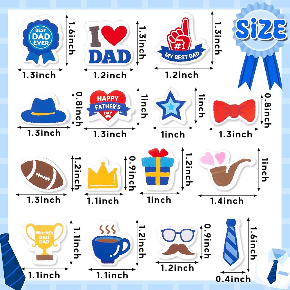 مجموعة قيمة للغاية - تتضمن العبوة 300 قطعة من الملصقات الجميلة المتنوعة لعيد الأب السعيد في 15 نمطًا مختلفًا، بما في ذلك الرجبي، وربطات العنق، وربطات العنق، واللحية، والنظارات، والجوائز، والقبعات، والتيجان، وأكثر من ذلك، وهي لوازم رائعة للعرض امتنانك لوالدك.