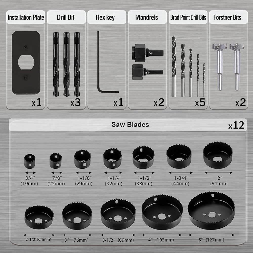 • استخدام واسع، تصميم مطور مع مسننات حادة للغاية لقطع أسرع وأنظف، مثالي للخشب اللين والخشب الرقائقي واللوح البلاستيكي واللوح الجصي ولوح PVC الرقيق. رائع لمهام قطع أحجام الثقوب المتعددة من الصغيرة إلى الكبيرة في أسطح المكتب والأبواب والأثاث.