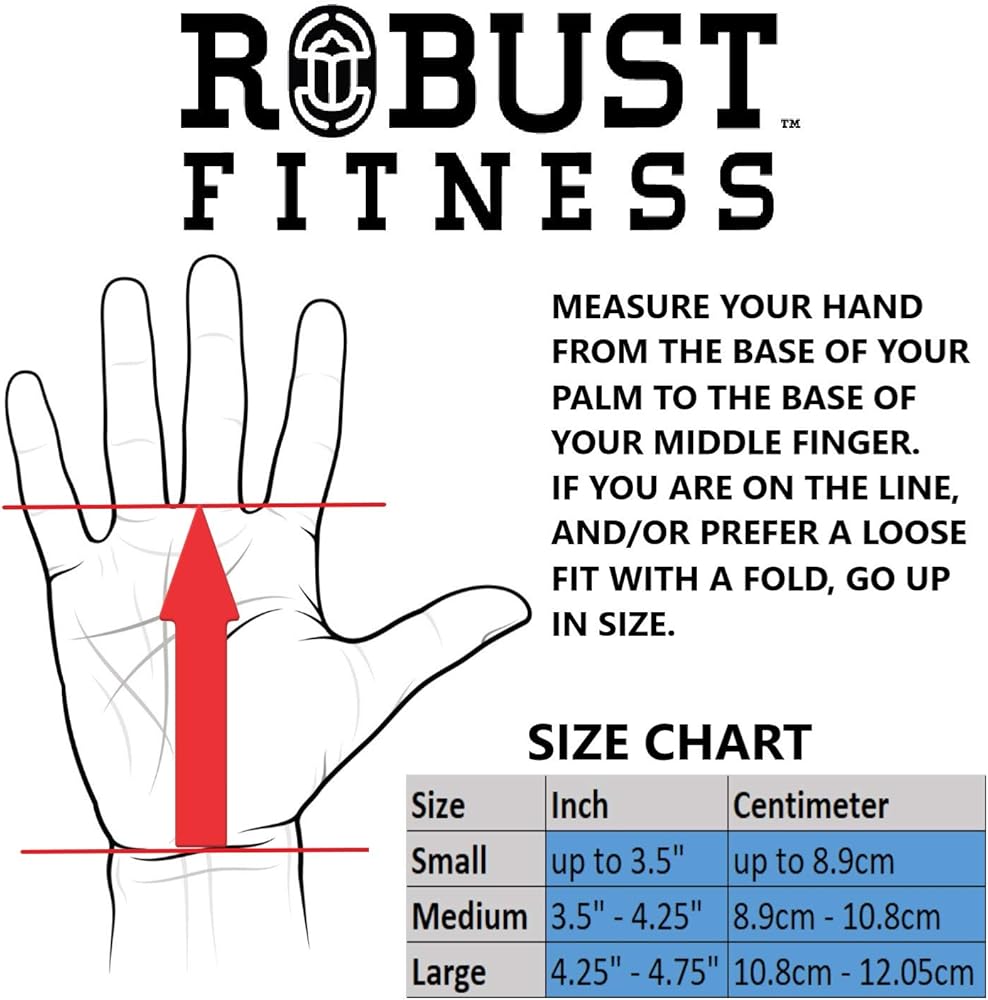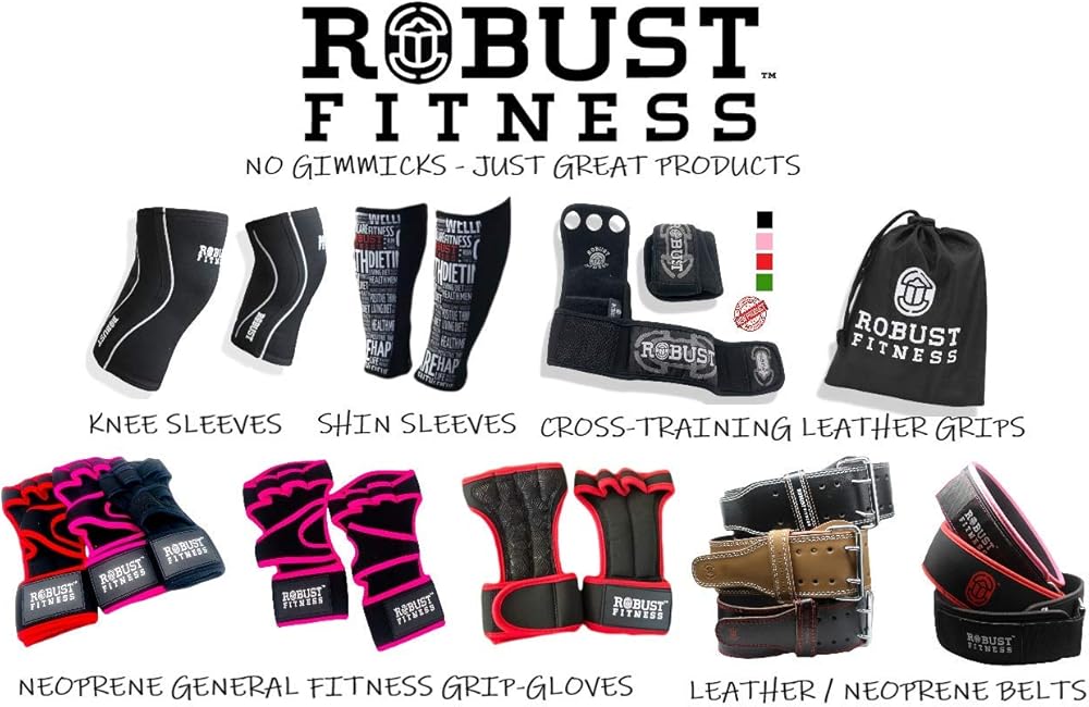 ROBUST FITNESS Genuine Leather Hand Grips for Cross-Training, Pull-ups, Weightlifting, WODs with Neoprene Wrist warps. Palm Shield from Rips & Blisters.