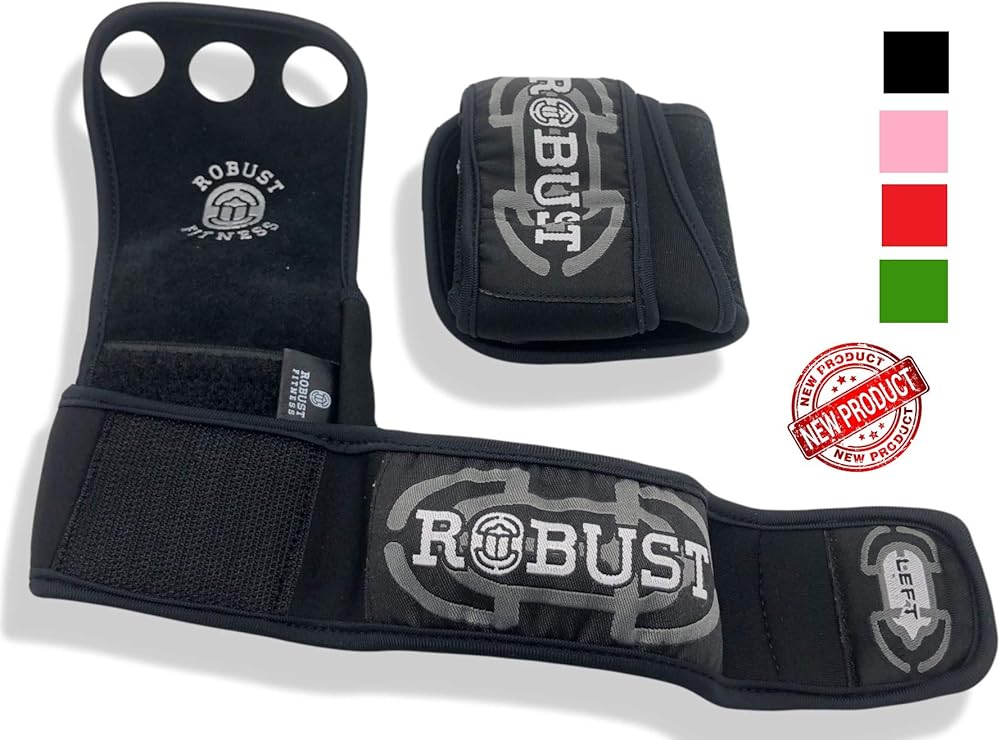 • 🅽🅾 🅶🅸🅼🅼🅸🅲🅺🆂 – THE BEST GRIPS! ROBUST FITNESS genuine leather Hand Grips are the perfect grips for your daily WOD. This Grips come with 3 finger holes. The Grips are “airy” and come with an adjustable Neoprene wrist wraps for ideal comfort and protection. Choose a color option that matches your style.