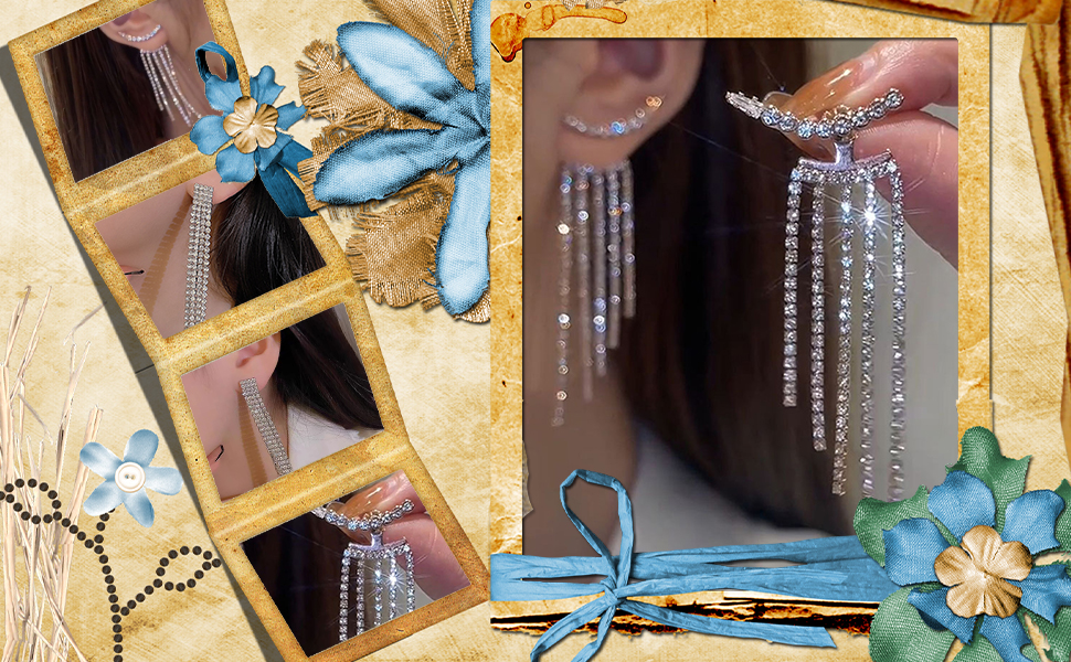 أقراط شرابة من حجر الراين: هذا القرط المصنوع من حجر الراين مناسب لمعظم ملابسك. تعتبر الأقراط المتدلية ذات الشرابة الطويلة من الألماس للزفاف إكسسوارًا مثاليًا لتعزيز تجربة ارتدائك.