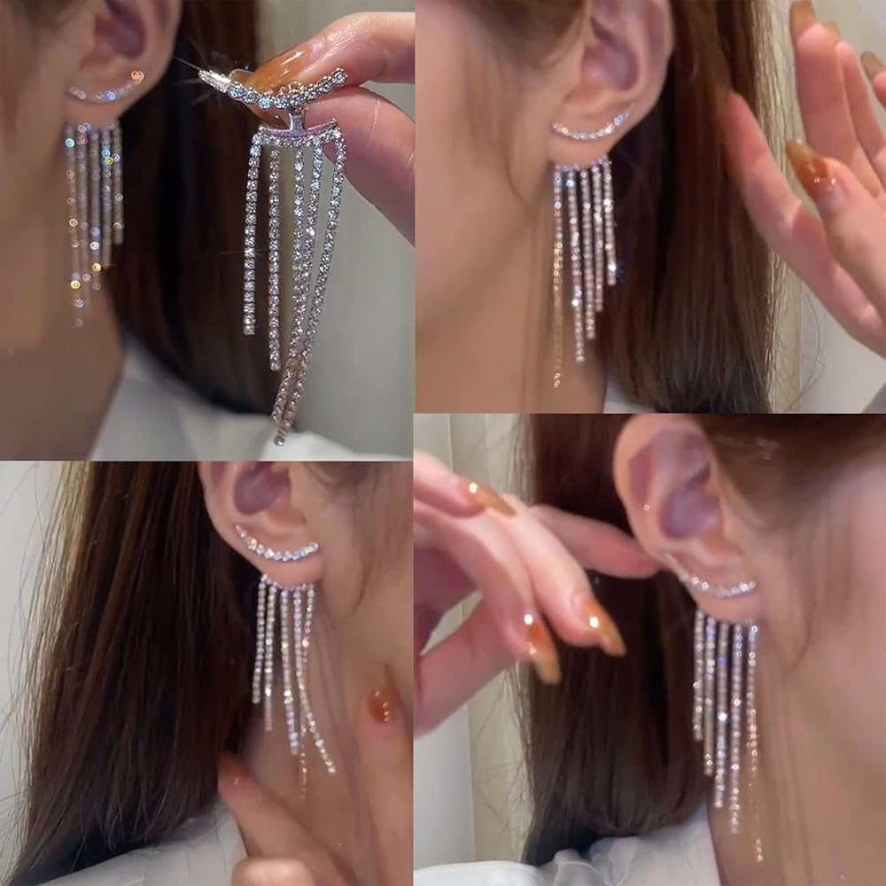 أقراط لحفلات الزفاف والحفلات الراقصة: سلاسل شرابة كريستال متلألئة، مناسبة في الحجم، رائعة ومتينة. يمكن تزيين ومطابقة ملابسك وشعرك ومكياجك.