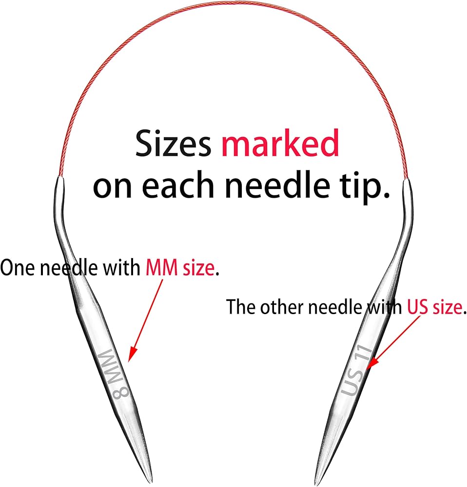 • لماذا تختارنا - إبر الحياكة الفولاذية الخاصة بنا رائعة للمبتدئين، مصنوعة من الفولاذ المقاوم للصدأ بأطراف شبه مدببة، ولا تنزلق الغرز مثل الألومنيوم أو أي مواد أخرى. أسماء المقاسات عليها علامة على كل طرف إبرة، جانب واحد بالمقاس الأمريكي، وجانب آخر بمقاس MM.