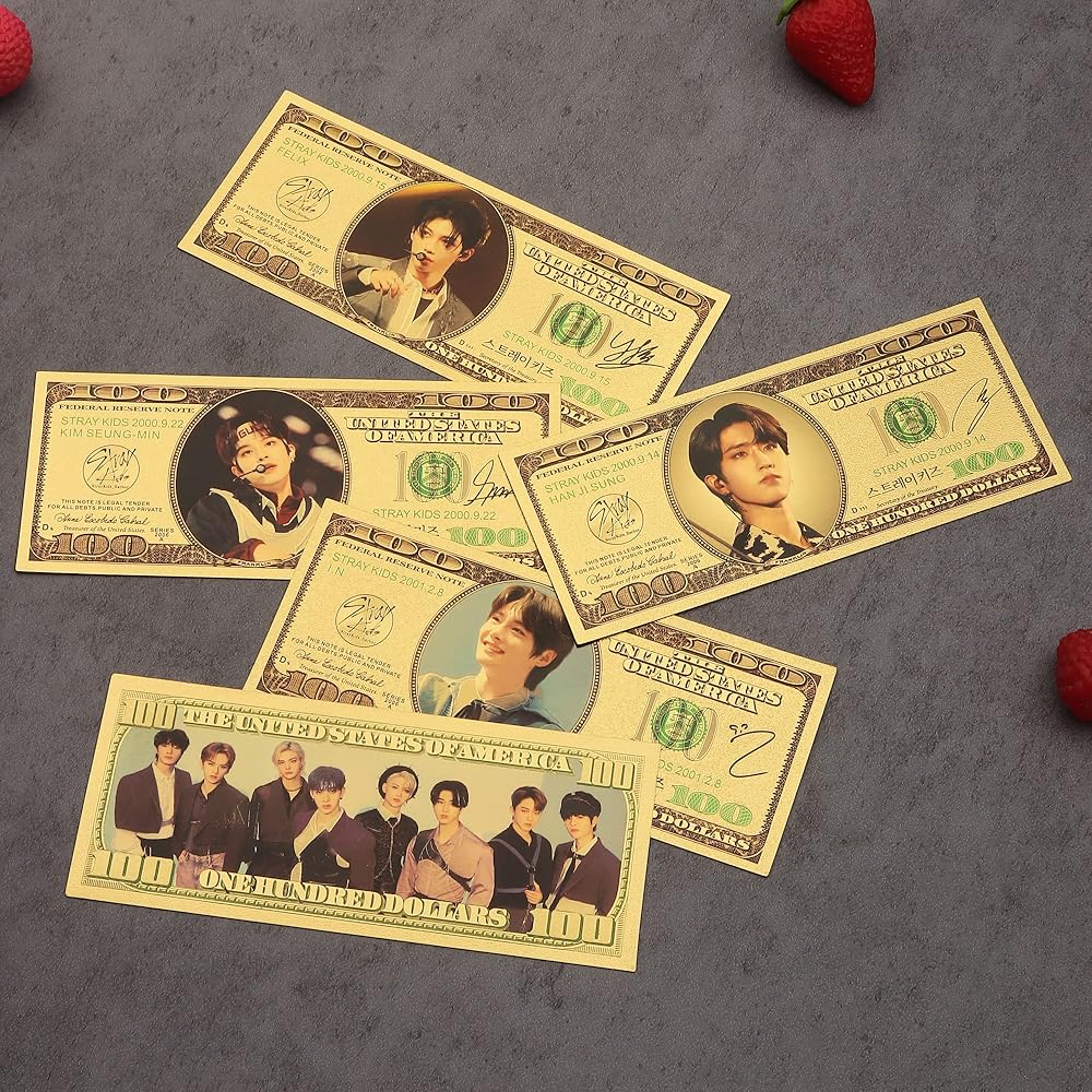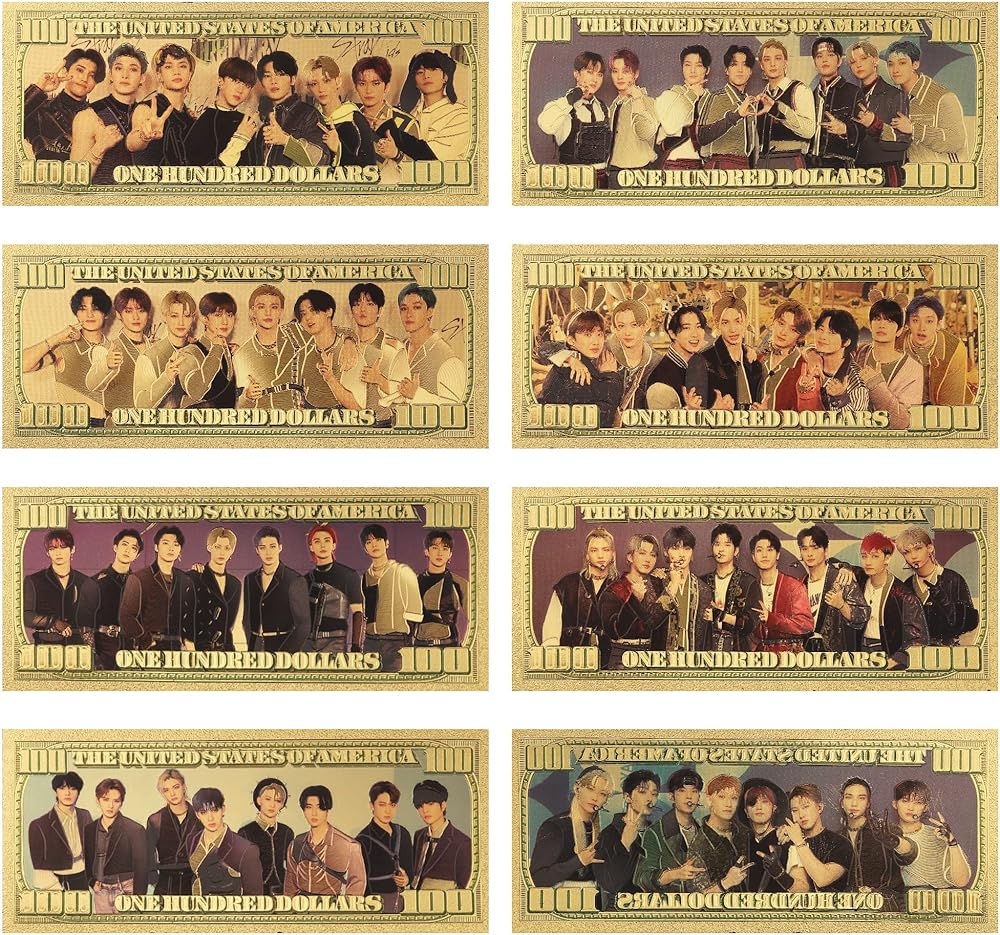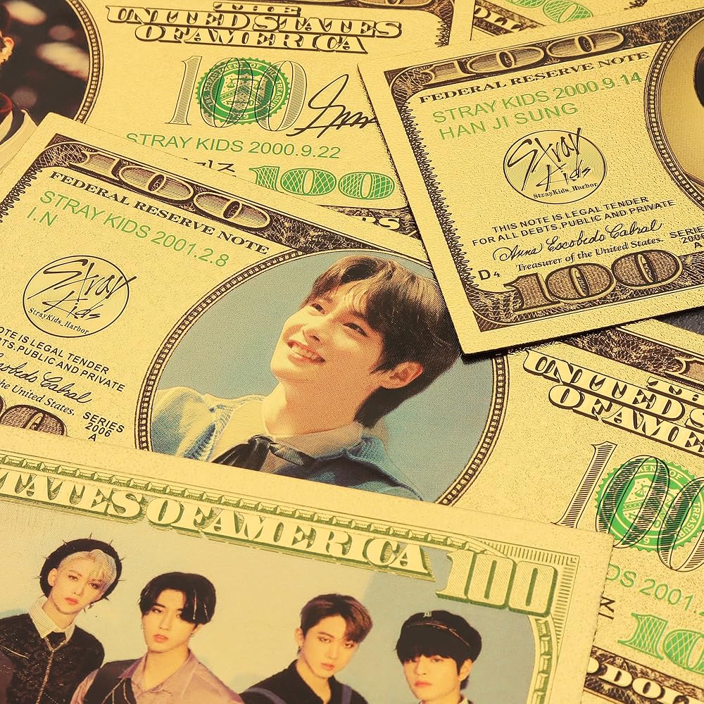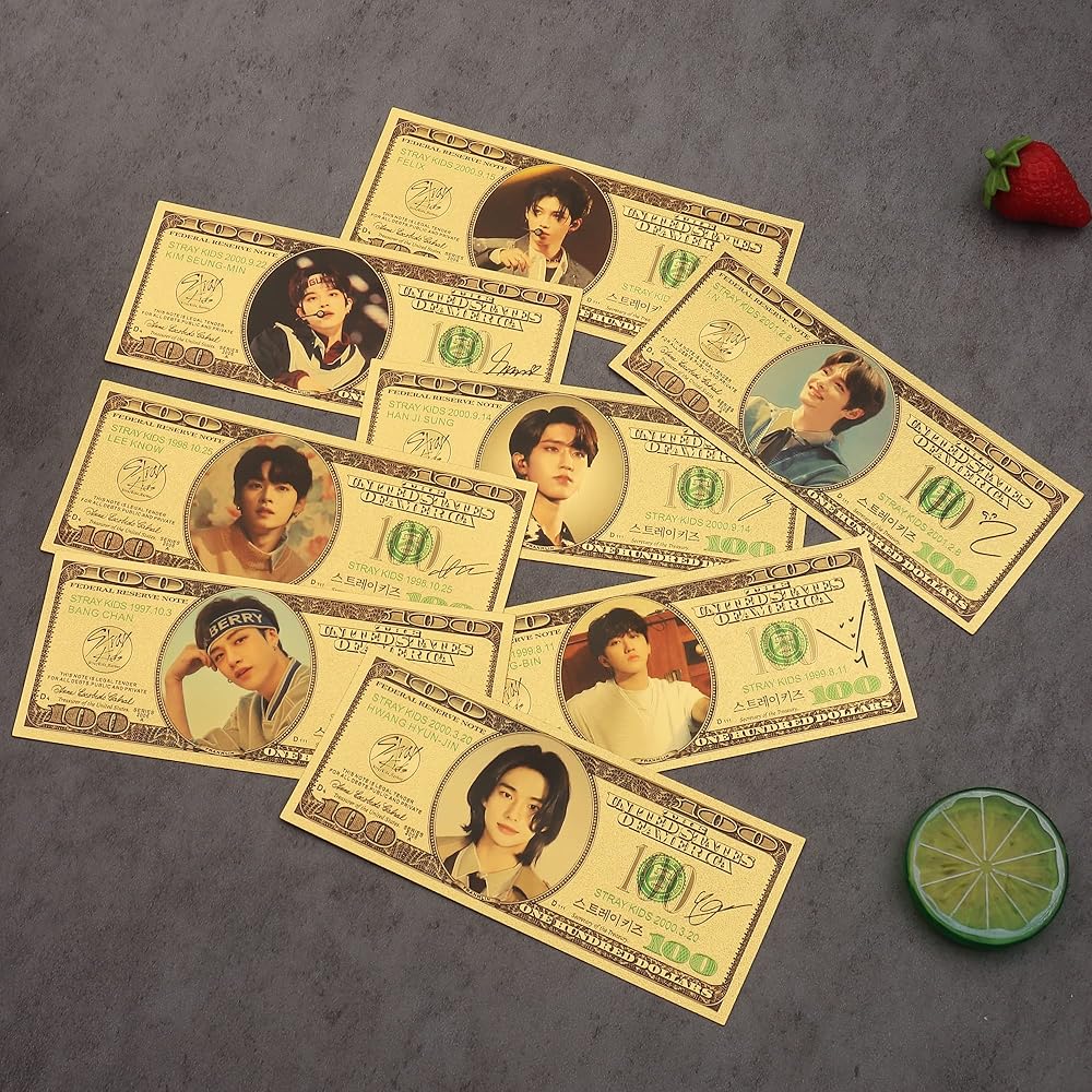 Kpop Merch for Stray Kids إصدار محدود من رقائق الذهب مجموعة الإشارات المرجعية المقتنيات الأوراق النقدية هدية (8 قطع طباعة على جانبين)