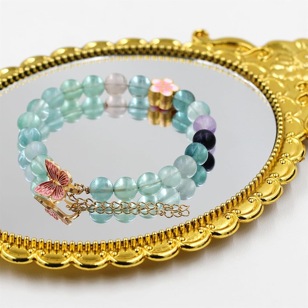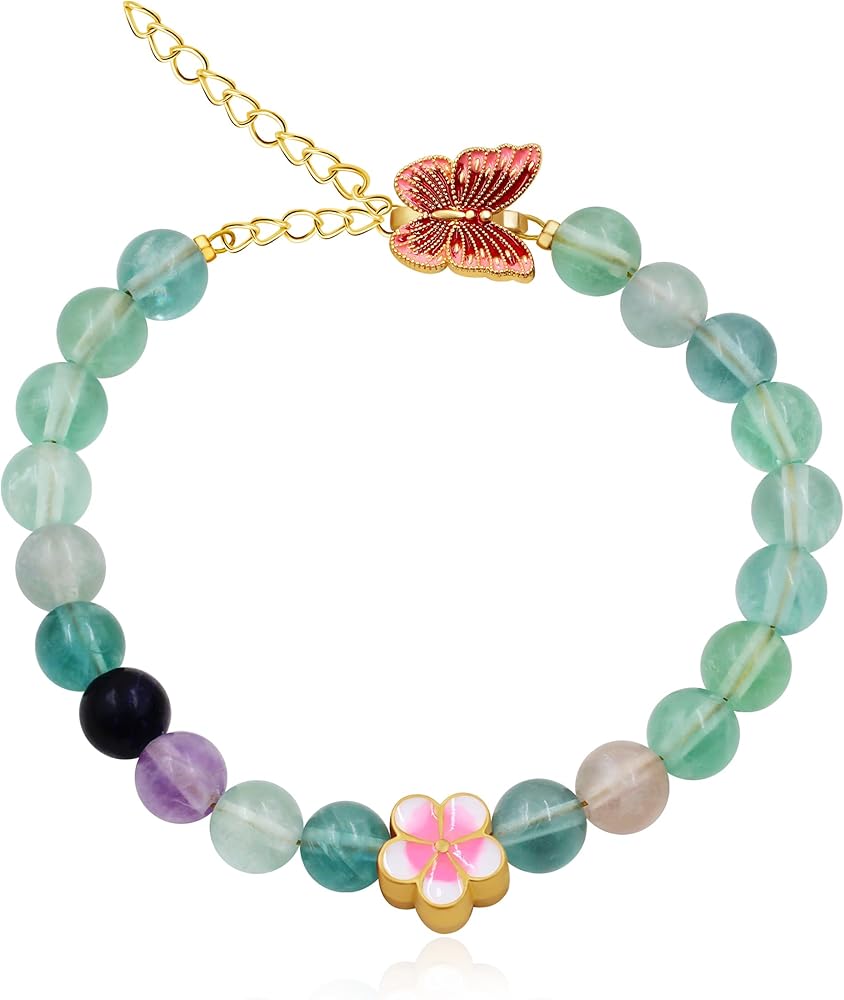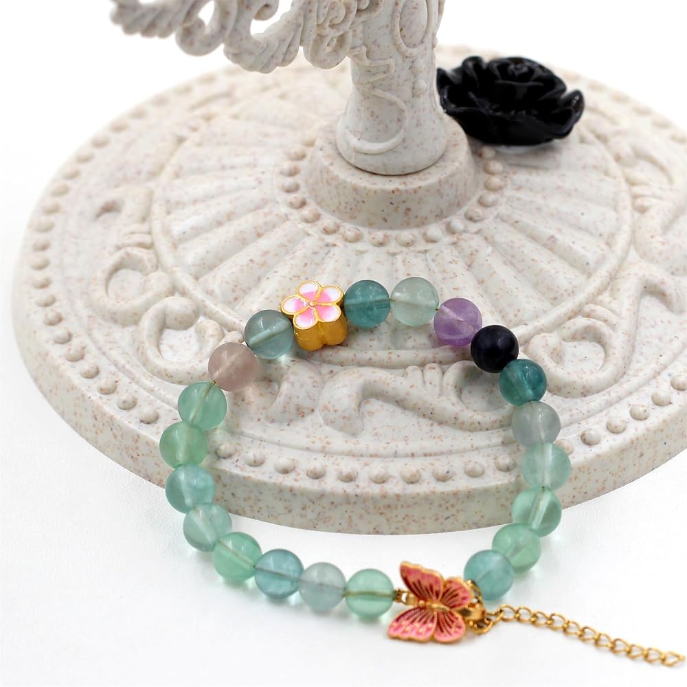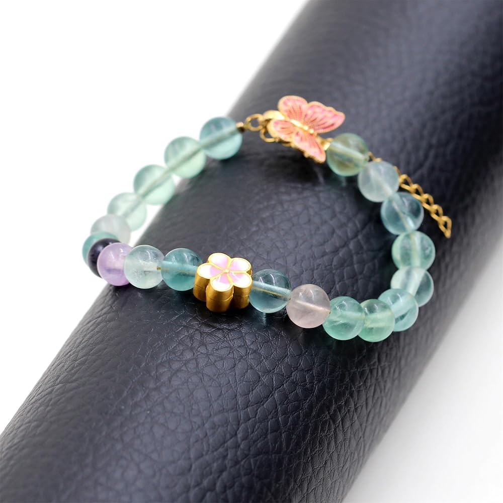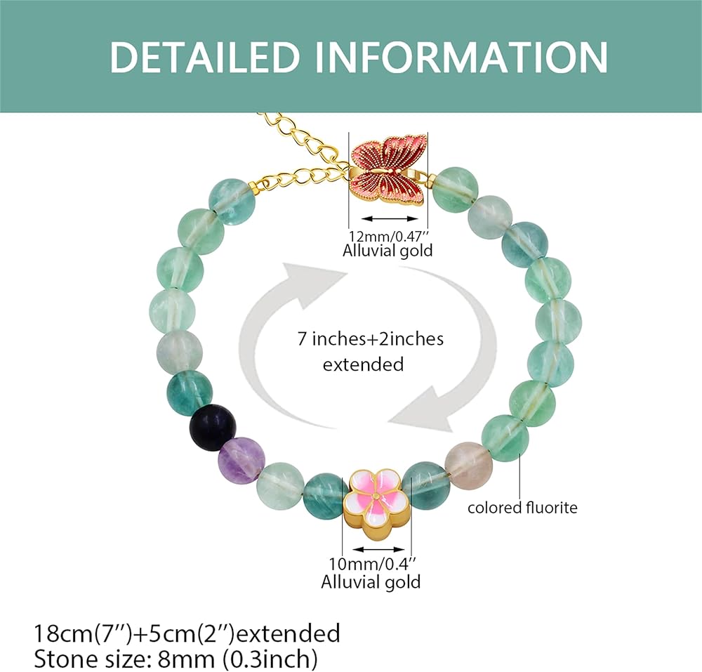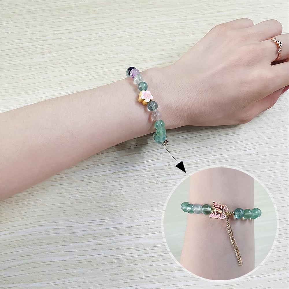 ♥ Exquisite and Elegant Design: The interplay of colorful fluorite beads, along with the charming red butterfly and delicate pink cherry blossom accents, creates an eye-catching and beautiful accessory, adding a touch of color to any look.
