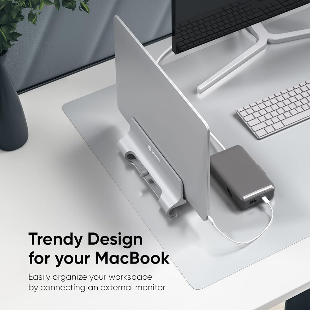 ✔️ تحسين مساحة سطح المكتب الخاص بك: يتيح لك التثبيت الرأسي لجهاز الكمبيوتر المحمول الخاص بك تنظيم مكتبك وتوفير مساحة ثمينة؛ أداة أنيقة ومفيدة لحياتك اليومية. يعد اللون الفضي الجميل وملمس الحامل مكملاً مثاليًا لجهاز MacBook الخاص بك.