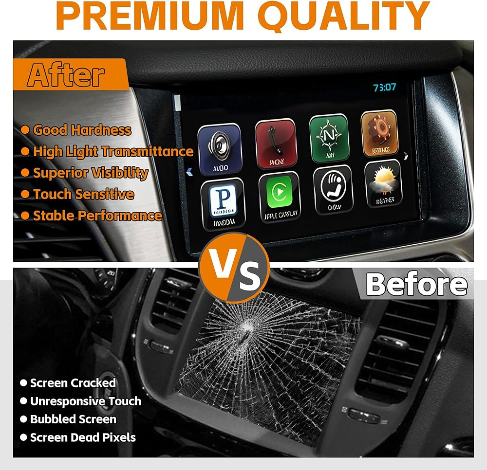 • نماذج متوافقة: استبدال شاشة لمس 8 بوصة لرقم جزء OEM: DJ080PA-01A. متوافق تمامًا مع 2015 - 2019 شيفروليه سوبربان، 2015 - 2019 شيفروليه تاهو، 2015 - 2020 تشيفي كولورادو، 2014 - 2018 شيفروليه سيلفرادو، 2015 - 2019 جي إم سي يوكون، 2015 - 2020 جي إم سي كانيون، 2014 - 2018 جي ​​إم سي سييرا، 2017 - 201 9 جي إم سي أكاديا وصف جي إم سي تيرين 2017 - 2019.
