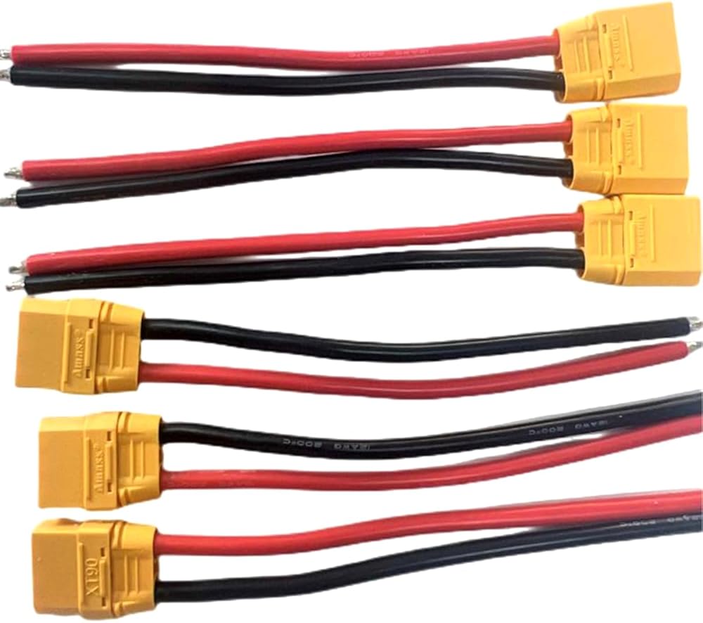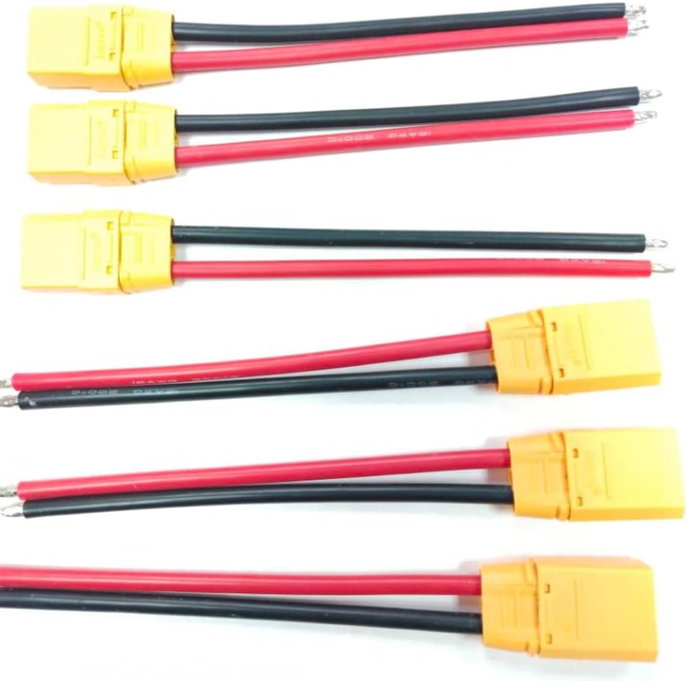 - Hengfuntong-Elec 3 أزواج 6 قطع عالية التيار أمبير شحن RC شاحن بطارية XT90 XT 90 التوصيل مع غطاء موصل سالب ذكر سلك أسلاك التوصيل المصنوعة 12awg 100 مم