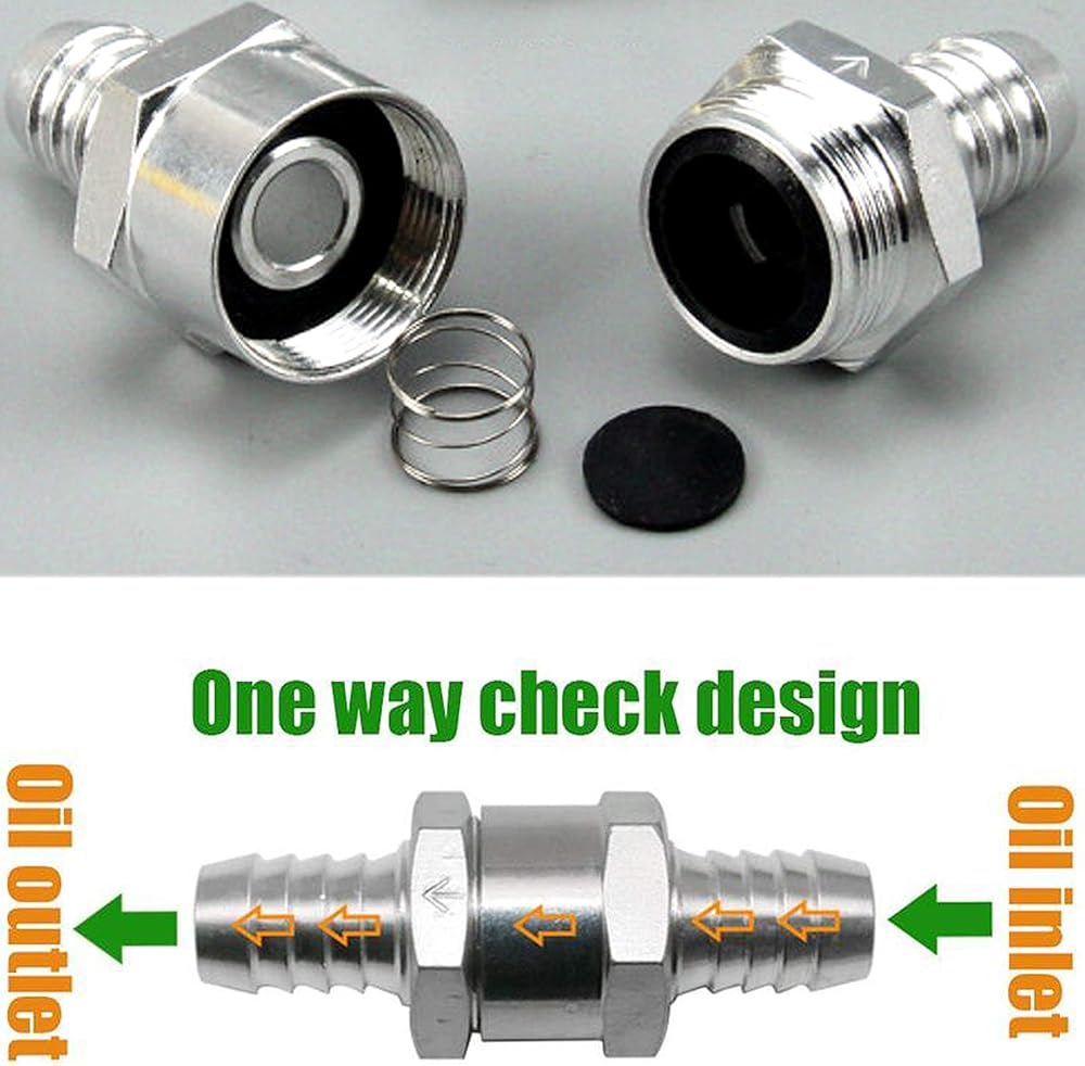 صمامات فحص KEWAYO - خط وقود 16 مم 0.63 بوصة، صمامات فحص غير قابلة للإرجاع في اتجاه واحد، هيكل من سبائك الألومنيوم، عبوة من قطعتين، مثالية للزيت والبنزين والديزل