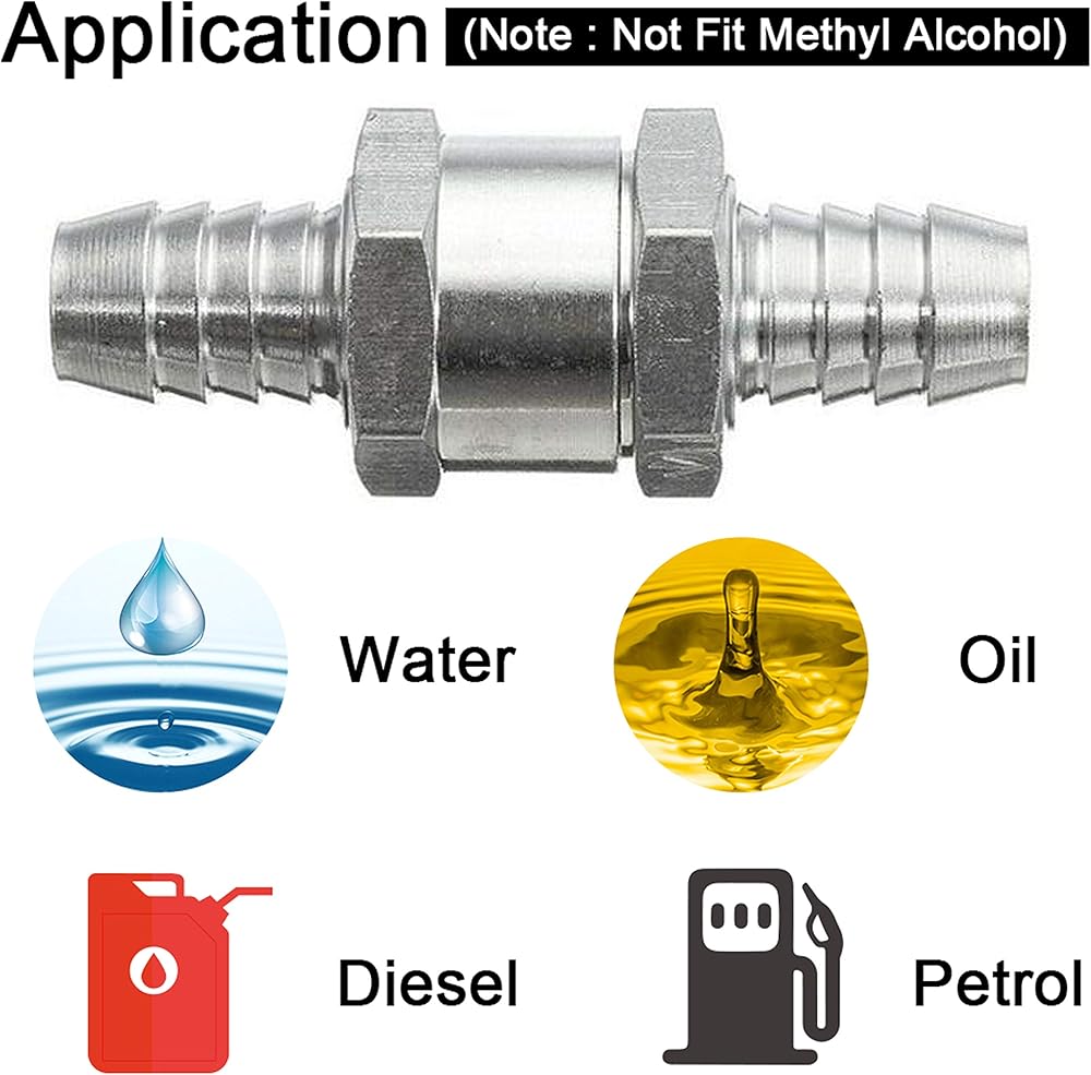 يتم تركيب صمام فحص خرطوم الوقود في العديد من أنظمة الوقود الديزل / الوقود الحيوي / المكربنات وأنظمة الوقود ذات الضغط المنخفض حيث ترغب في تدفق الوقود في اتجاه واحد فقط. مناسبة للمياه والبنزين والديزل والزيت والسوائل الأخرى.