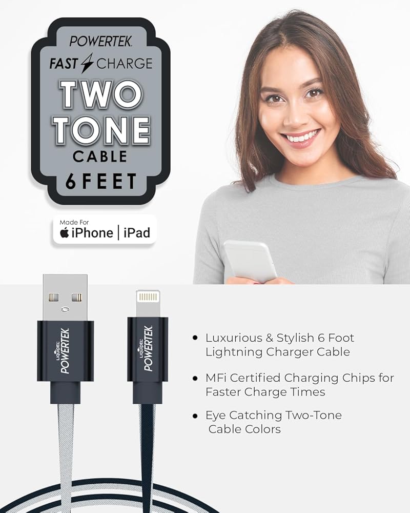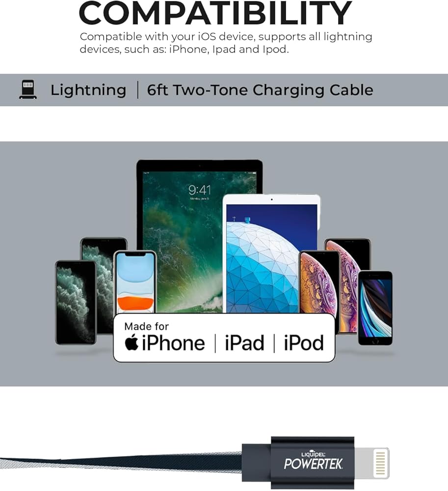 - كابل شاحن Liquipel Powertek Premium Lightning إلى USB ذو لونين