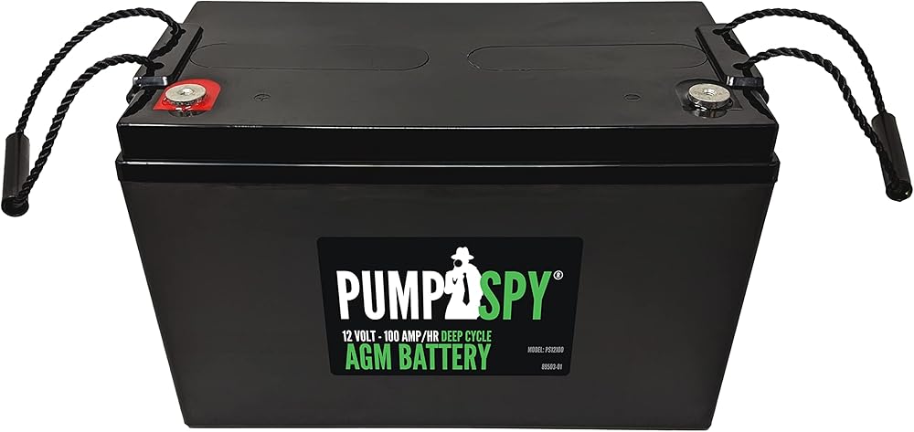 PumpSpy's 12 VDC, 100 Ah Sealed Lead Acid AGM Deep Cycle battery is recommended for use with the PumpSpy Primary Sump Pump Backup Power System. This battery is compatible with most other battery backup sump pumps and other products requiring a 12 VDC deep cycle battery. Completely maintenance free, this sealed battery never requires additional water or dangerous acid. Sealed AGM (Absorbent Glass Mat) batteries avoid issues like spillage that can occur with traditional wet-cell batteries. Sealed AGM batteries do not sulfate or degrade like wet-cell batteries since they are completely sealed. AGM batteries differ from wet cell batteries in that the electrolyte is held in the glass mats, as opposed to freely flooding the plates. Very thin glass fibers are woven into a mat to increase surface area enough to hold sufficient electrolytes on the cells for their lifetime. This results in higher efficiency when both discharging and recharging, due to the higher surface area contact between these critical elements. The thermally welded enclosure eliminates leakage and the battery can be used in any orientation.