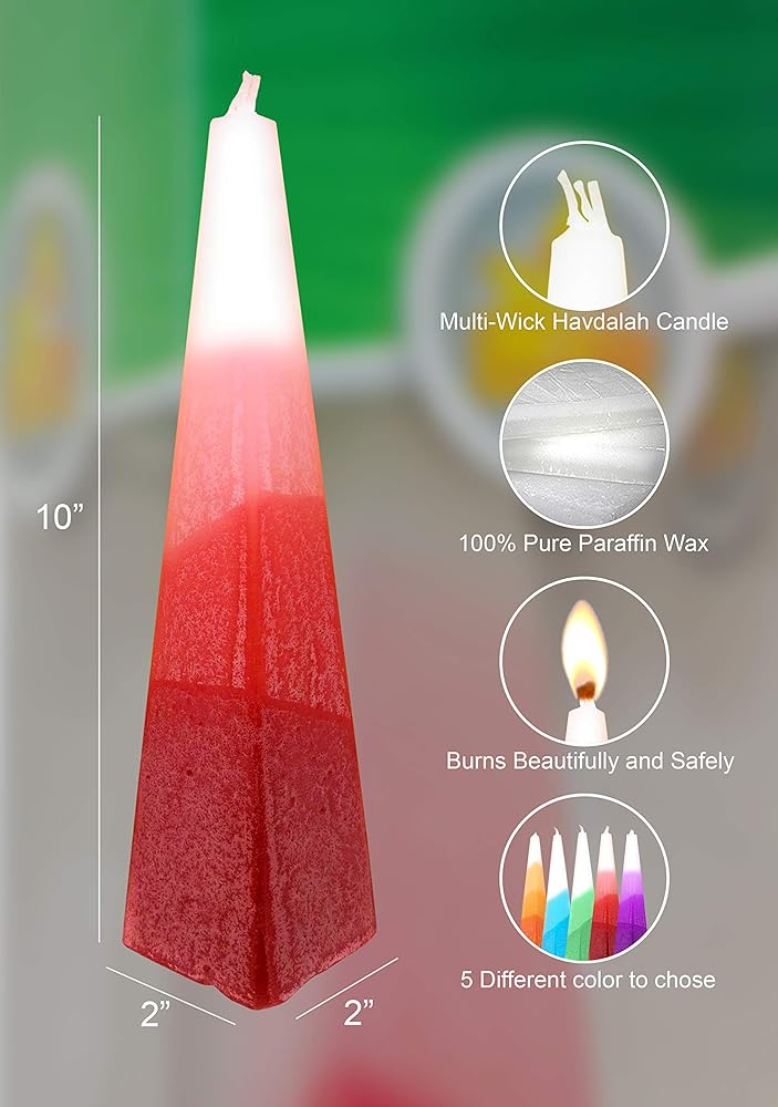 كوشير 100%: تحتوي هذه الشموع الكبيرة على فتائل متعددة مما يخلق الشعلة الكبيرة مثل اللهب اللازم لحفل هافدالا في ليلة السبت. هذا جزء أساسي من أي مجموعة هافدالا.